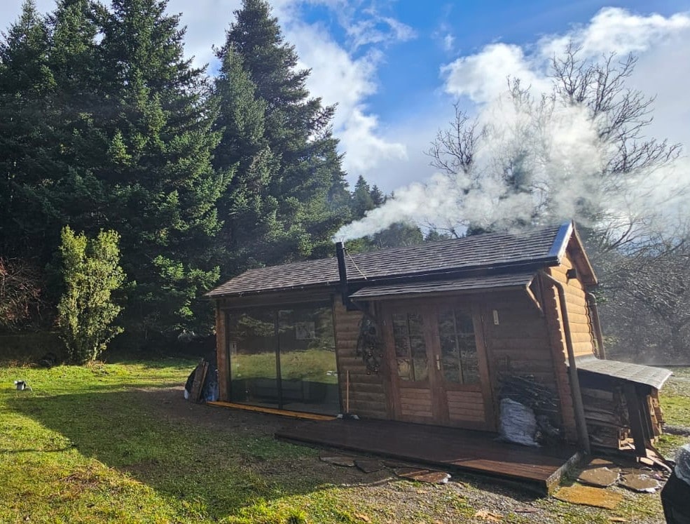 Small wood cabin for nature lovers, by the river and forest. Accommodates a couple with core amenities and a special view of nature outside. May accommodate a child in addition, up to 8y.o., so as to fit in the 140cm bed couch. 17sqm space for you to spend time in and enjoy nature outside. Cabin heated with a wood stove.
