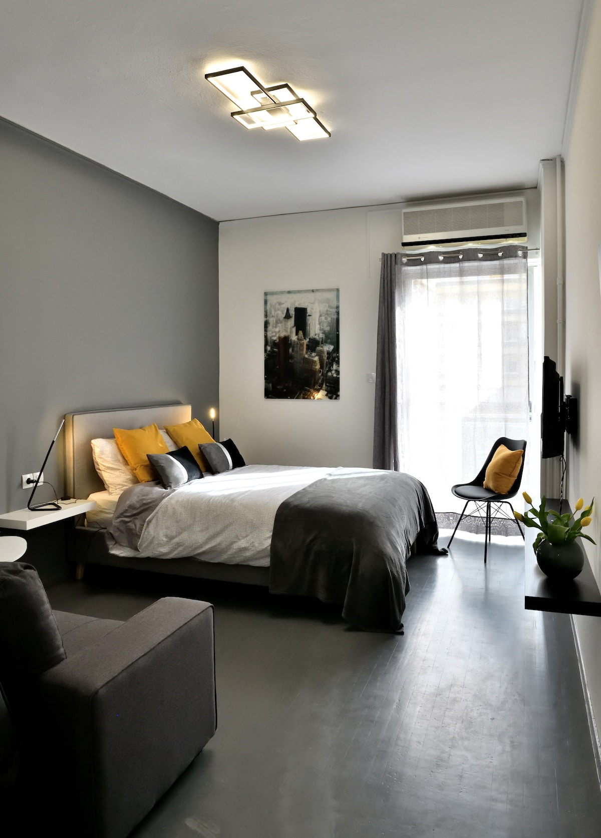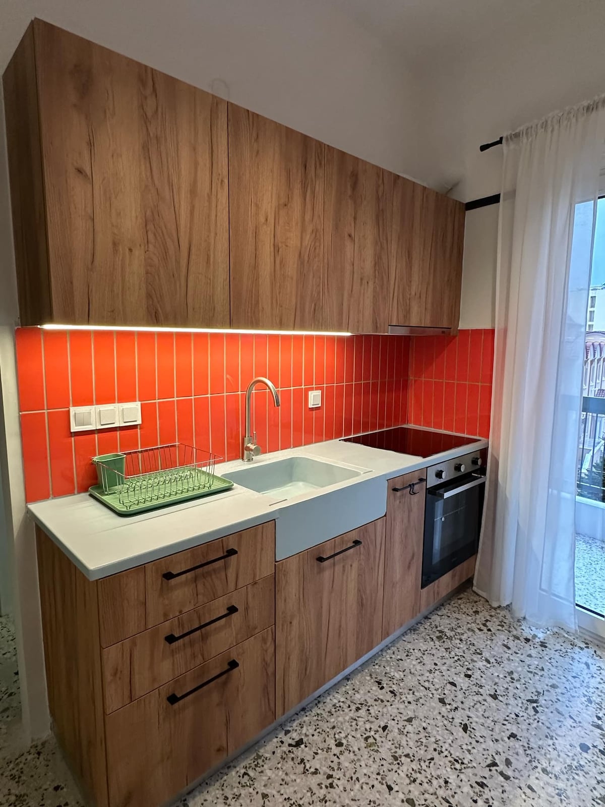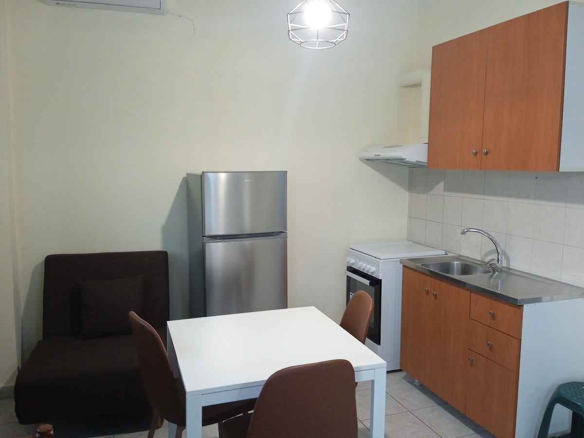 A beautiful fully renovated 1st floor condo (30 sqm) in a peaceful neighborhood at Hagia Sophia district in Patras. With 1 double bed and a sofa turning to double bed, this 1-room apartment offers an ideal choice for single visitors, couples or families with small kids. Very well served by public transport both for the center of the city (about 1.8 Km away) and Rion / University of Patras (about 5.5 Km away). Free parking available in the vicinity of the apartment.