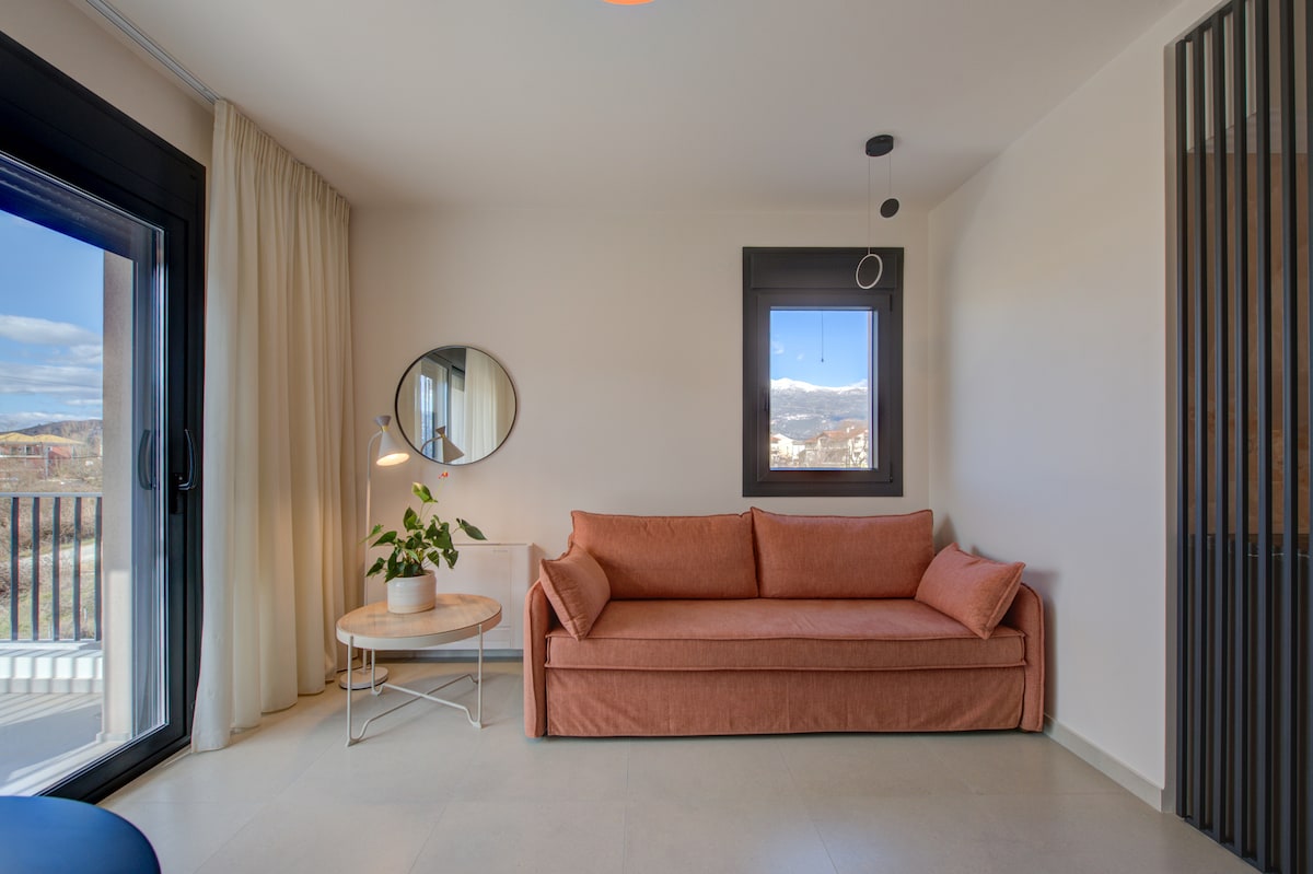 Olive Garden Studio - Our 32sqm basement studio offers a cozy accommodation just a 6-minute drive from the Acheron River. Tastefully furnished with a fully equipped kitchen and comfortable living area with a flat-screen TV. Enjoy the sunset on your terrace. Free Wi-Fi and parking are available. Experience adventures like rafting on the Acheron or relax at nearby beaches. Discover hiking trails and traditional taverns.