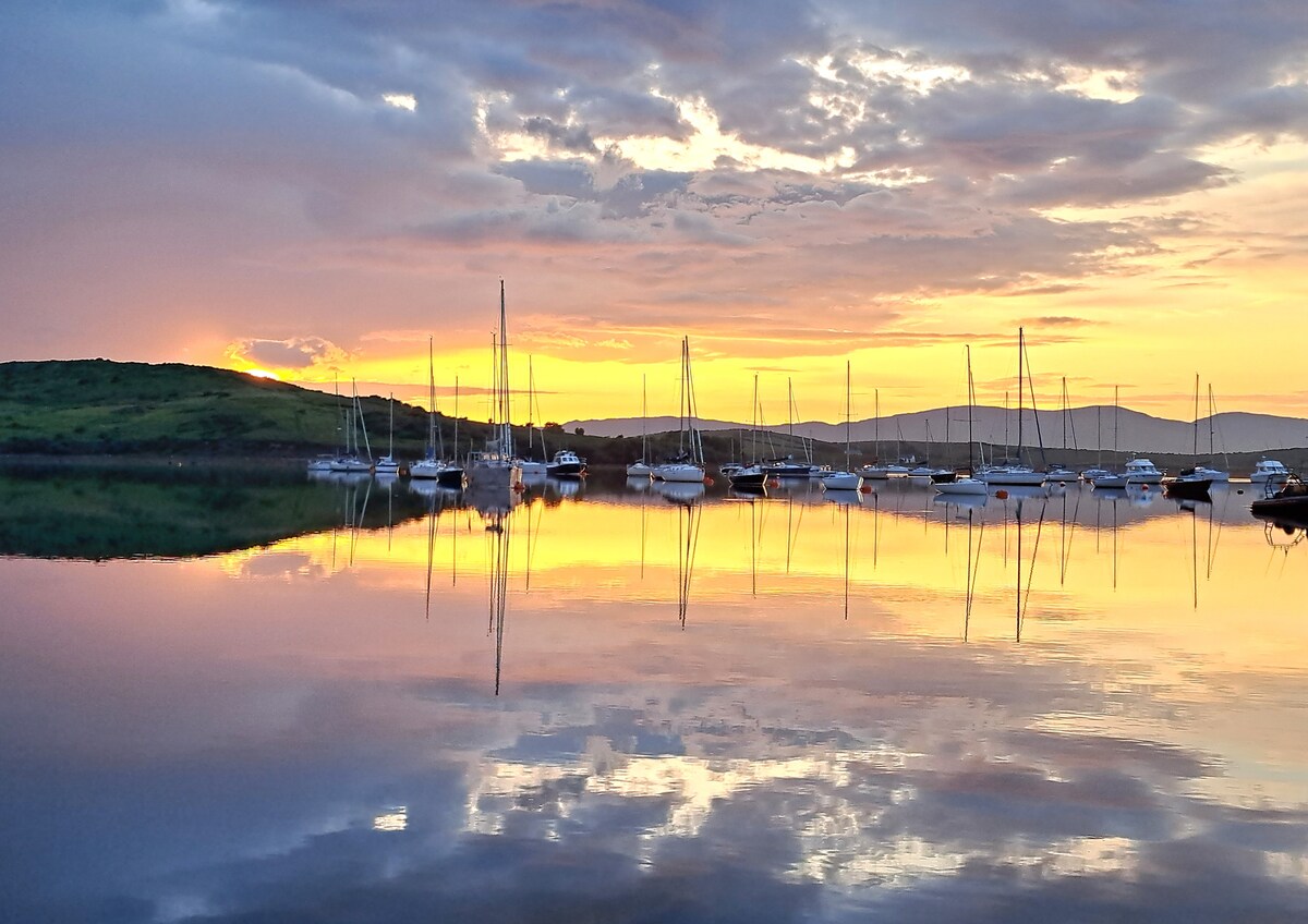 Rosclave Lodge, Newport, Co. Mayo, is located on the tip of a peninsula facing west on Clew Bay in an EU designated Special Area of Conservation, the highest grade for protected locations. SatNav Post code: F28CC89. Newport, 1.5 miles away, is a charming village with lively pubs, a supermarket, & Newport House, a Relais et Chateaux hotel. Westport, 6 miles away, was voted the best place in Ireland to live. There are many restaurants & shops & many arts festivals, music festivals, all year round.