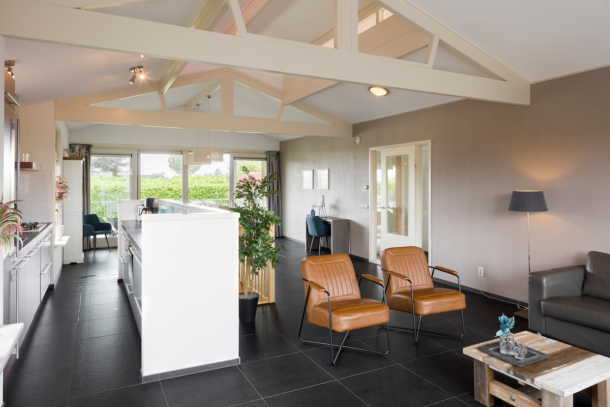 拥有开阔视野和花园的豪华农舍