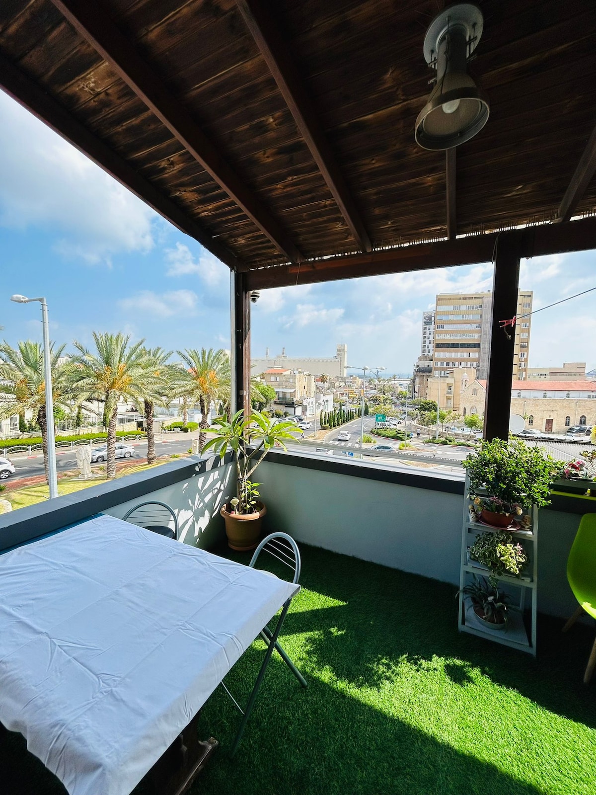 A warm apartment on the fifth floor of a new, luxurious building in central Haifa, within walking distance of public transport: train, bus, and cable car, and close to the German Colony, Haifa port, and the Baha'i Gardens. The area has bars, restaurants, and cafes. The apartment has a huge balcony with stunning views of the city, Mount Carmel, and the sea. Perfect for anyone who wants to enjoy the city and be close to attractions like the Baha'i Gardens.