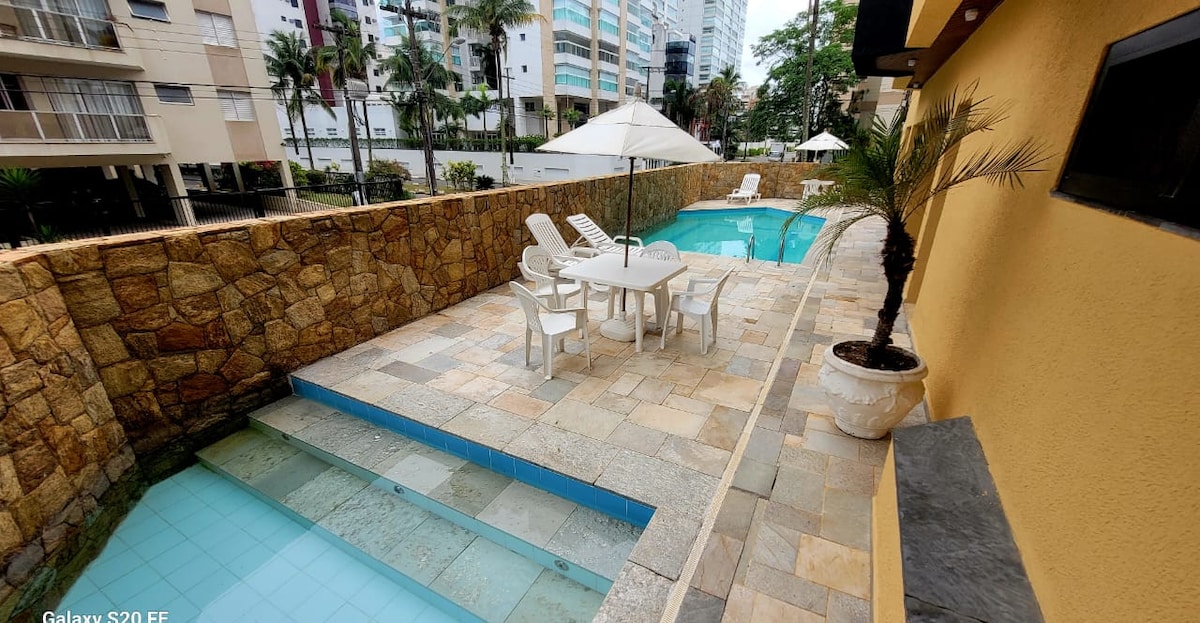 瓜鲁雅(Guarujá)的普通民宅,带游泳池,距离Guaiuba海滩400米