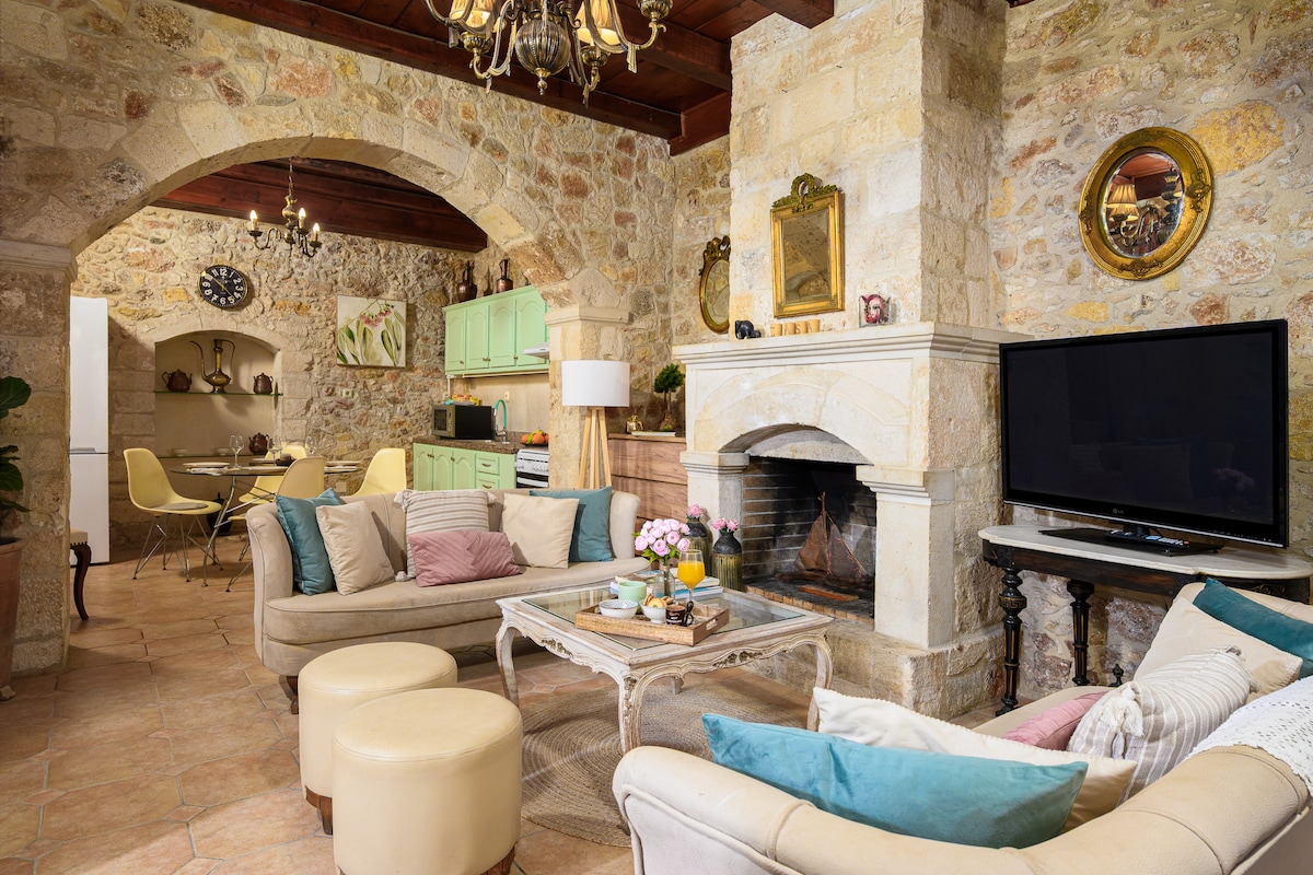 Manuelo Relaxing Villa is a charming stone built villa located in the heart of Old Hersonissos, harmoniously combining traditional Cretan architecture with modern comforts. Surrounded by authentic village scenery, it is an ideal choice for both summer holidays and cozy winter escapes. The villa features a private outdoor jacuzzi and a fireplace, offering year round relaxation, comfortable living spaces, privacy, and an authentic Cretan hospitality experience.