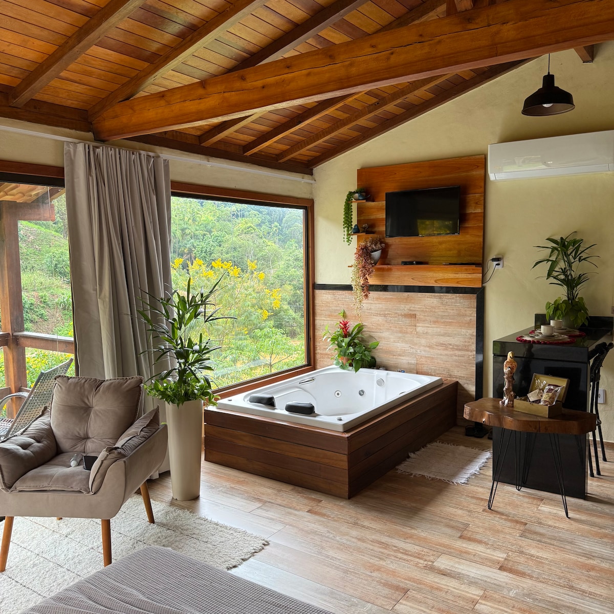 A apenas 6 km do centro de Domingos Martins, no Circuito do Chapéu, nosso espaço foi pensado com carinho para oferecer conforto e privacidade em meio à natureza. Seja para um fim de semana romântico, uma pausa revigorante ou dias de descanso junto a quem você ama! Ao chegar, você será recebido por um ambiente acolhedor, onde o conforto se une à natureza para criar uma experiência única. No caminho, há ótimos restaurantes, e estamos a 45 km do Parque Estadual da Pedra Azul.