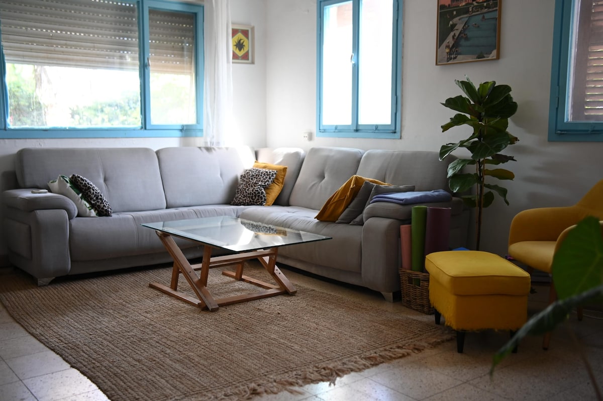 Picture yourself steps away from the stunning Achziv Nahariya beach, where sun, sand, and a vibrant beach bar /restaurant beckon. This is your ideal destination for the perfect coastal escape. As evening falls, retreat to the comfortable bedroom for a peaceful night's sleep. Wake up refreshed, brew your coffee and sit on the private balcony, where you can soak in views of the surrounding greenery and plan your day ahead. welcome to our slice of paradise on Israel's stunning coastline.