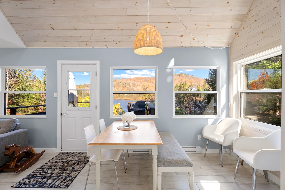 Profitez de l'effet apaisant de la nature en séjournant dans ce chalet contemporain à fenestration abondante en plein coeur de la forêt. Tremblant est magnifique, peu importe la saison. Destination plein air de rêve, vous serez à 8 minutes du Mont-Blanc et 20 minutes du Mont Tremblant. Que ce soit pour la randonnée, le ski de fonds, la raquette ou la motoneige, des sentiers sont accessibles facilement dans toutes les directions. Sans oublier le célèbre P'tit Train du Nord à 3 minutes de route.