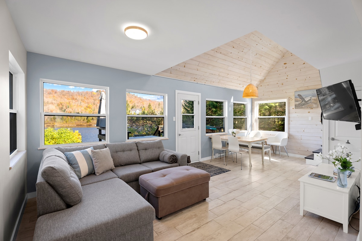 CITQ #299883 Elegant Country Living Les Laurentides à 45 minutes de Montréal. Chalet centenaire avec toutes les commodités modernes d'aujourd'hui (wifi haute vitesse (Fibe 1000) illimitée, Nespresso (Vertuo), air climatisé, foyer au bois, etc). Vue panoramique sur le lac Guindon et accès à une minute de marche (pédalo et kayak inclus). La sérénité au lac vous attend à 5 minutes de St-Sauveur, des pentes de ski et des glissades d'eau.