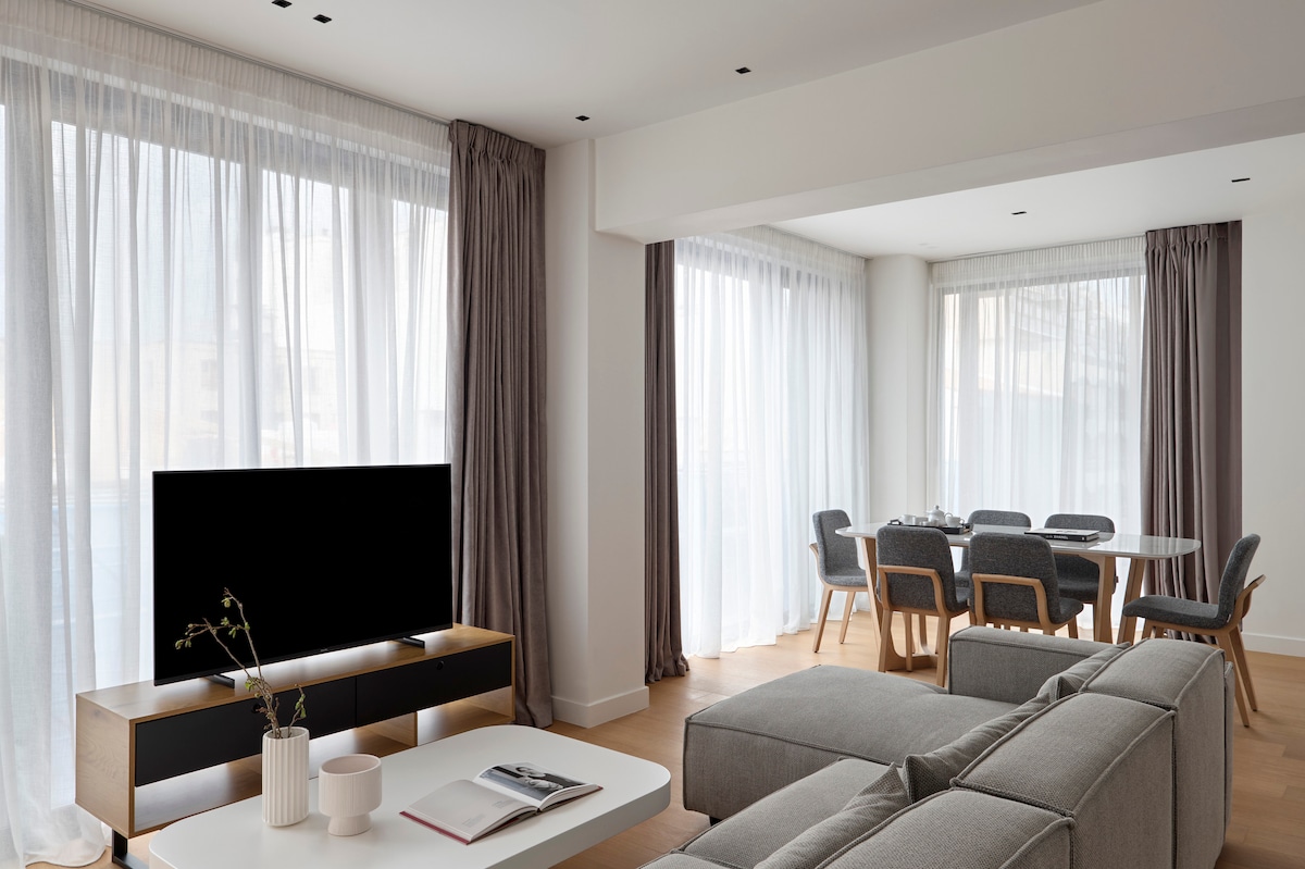 • Spacious Room with a king bed • Sleeps 2 people • 17-19 m2 • Kettle/mini fridge • Air conditioning • Local gym access included • Contactless access & 24/7 super responsive customer support team • Early check-in & late check-out (on request and with extra fee) • Fast WiFi • Smart TV • Baby crib available (upon request) • Each space is professionally cleaned to our 80-step ‘Ridiculously Clean’ standard before you arrive. • Climate-neutral & fully carbon offset