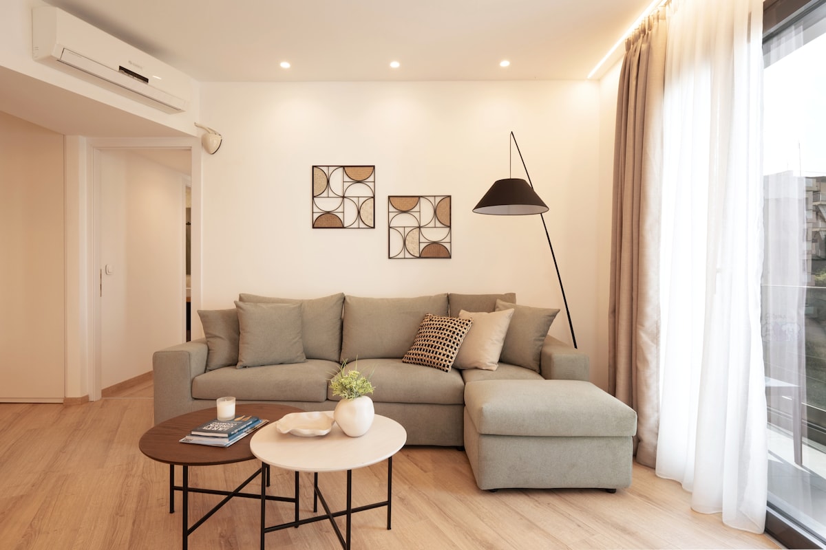 Enjoy a stylish experience in this centrally-located condo built in 2021, with shared pool. Only 12 minutes away from Acropolis (4km) & Syntagma Square (4.5 km). 10-15 min to Bolivar Beach (10km) & Piraeus Port (6.7km). Close to markets, shopping area, and restaurants. Green Metro line, bus, and taxi are minutes away. Big King size bed with comfortable mattress, and a comfy pull out couch. Fully equipped apartment, with a big balcony , and 65’ Tv. Book your travels with me.
