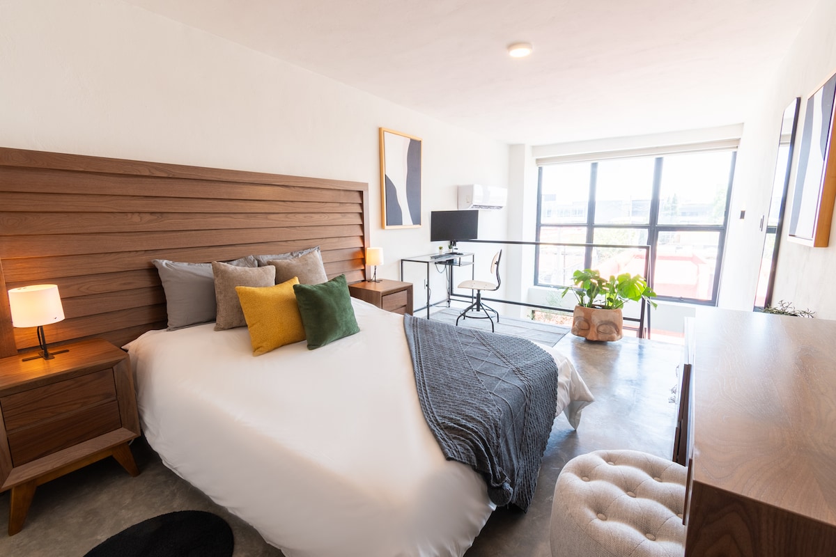 Located in one of the trendiest zones in Guadalajara, Colonia Americana is just a few blocks away from Chapultepec Ave. and Guadalajara's historic center. Enjoy your morning coffee on your private rooftop while you take in the sunrise or relax on the lounge chairs while you read your favorite book. Ideal for work. In the area you can find a great variety of local shops, mercados, restaurants and bars. You will get to discover why Jalisco is known for its delicious food and lovely people.