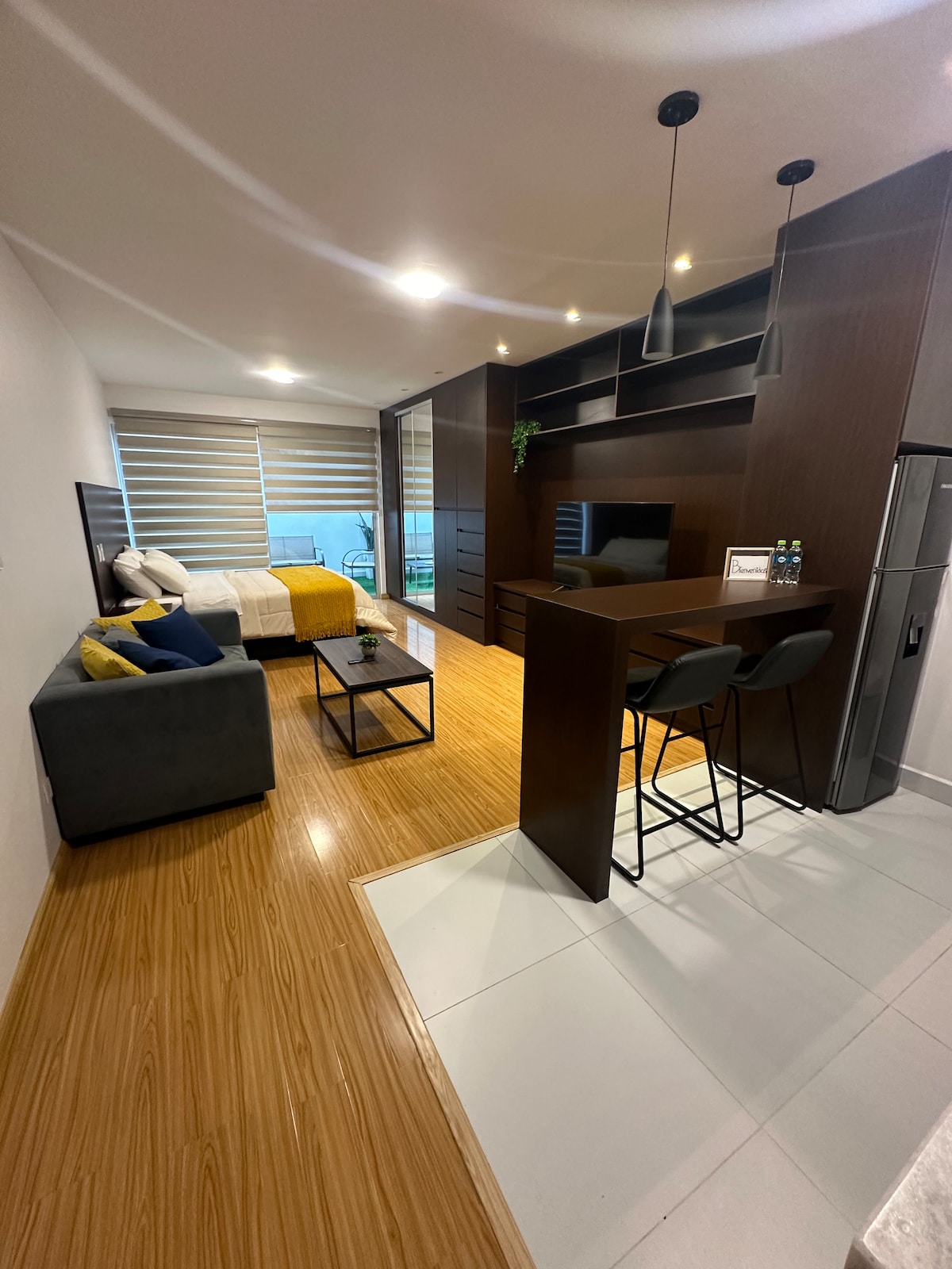 Descansa y disfruta en este moderno monoambiente, diseñado para brindarte confort y tranquilidad. Ubicado en una zona privilegiada, este espacio cuenta con todas las comodidades necesarias, incluyendo Smart TV, WiFi de alta velocidad, lavadora propia. Además, tendrás acceso a piscina (previa reserva), jacuzzi y sauna (pago por uso). Perfecto para viajes de negocios o escapadas a la ciudad. Disponible de parqueos para alquilar en el edificio.