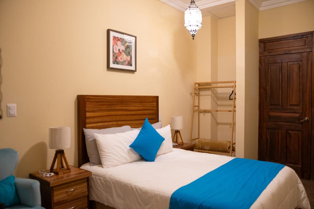 Habitación principal: Con una lujosa cama king size, baño privado y TV, esta habitación es un refugio de tranquilidad y confort. Segunda habitación: Equipada con una cómoda cama matrimonial. Tercera habitación: Cuenta con 2 camas matriomoniales y un colchón inflable, ideal para familias o grupos de amigos. segundo baño privado para las demas recamaras Además, hay un jardín privado para relajarte al aire libre. ¡Esperamos que disfrutes de tu estancia en nuestro hogar! Se cuenta con internet