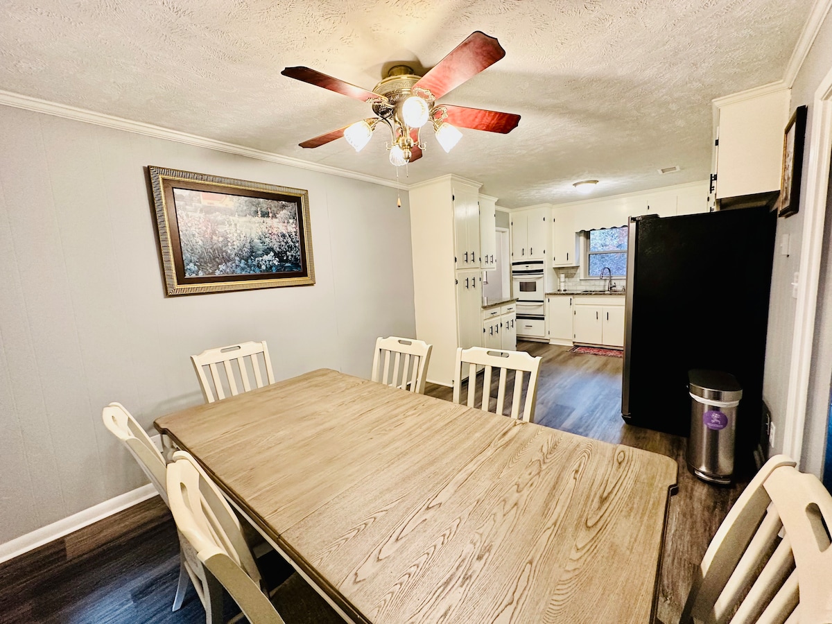 3BR/3BA Ranch House, SMART TV in every room, Private Backyard, Grill & Fire Pit. <1 mile from Walmart, Lidl, Aldi 4 miles to Downtown Woodstock 15 miles to PBR LakePoint 3.5 miles to Hwy 575 You will have the entire thoughtfully designed home to yourself. Enjoy the freshly renovated home with tons of NATURAL LIGHTS, FULLY EQUIPPED KITCHENS, SCREENED IN PORCH, STUDIO with tons of GAMES. Sleep up to 8 people! Many Shoppes & Local Restaurants within a 2-mile radius from the house.