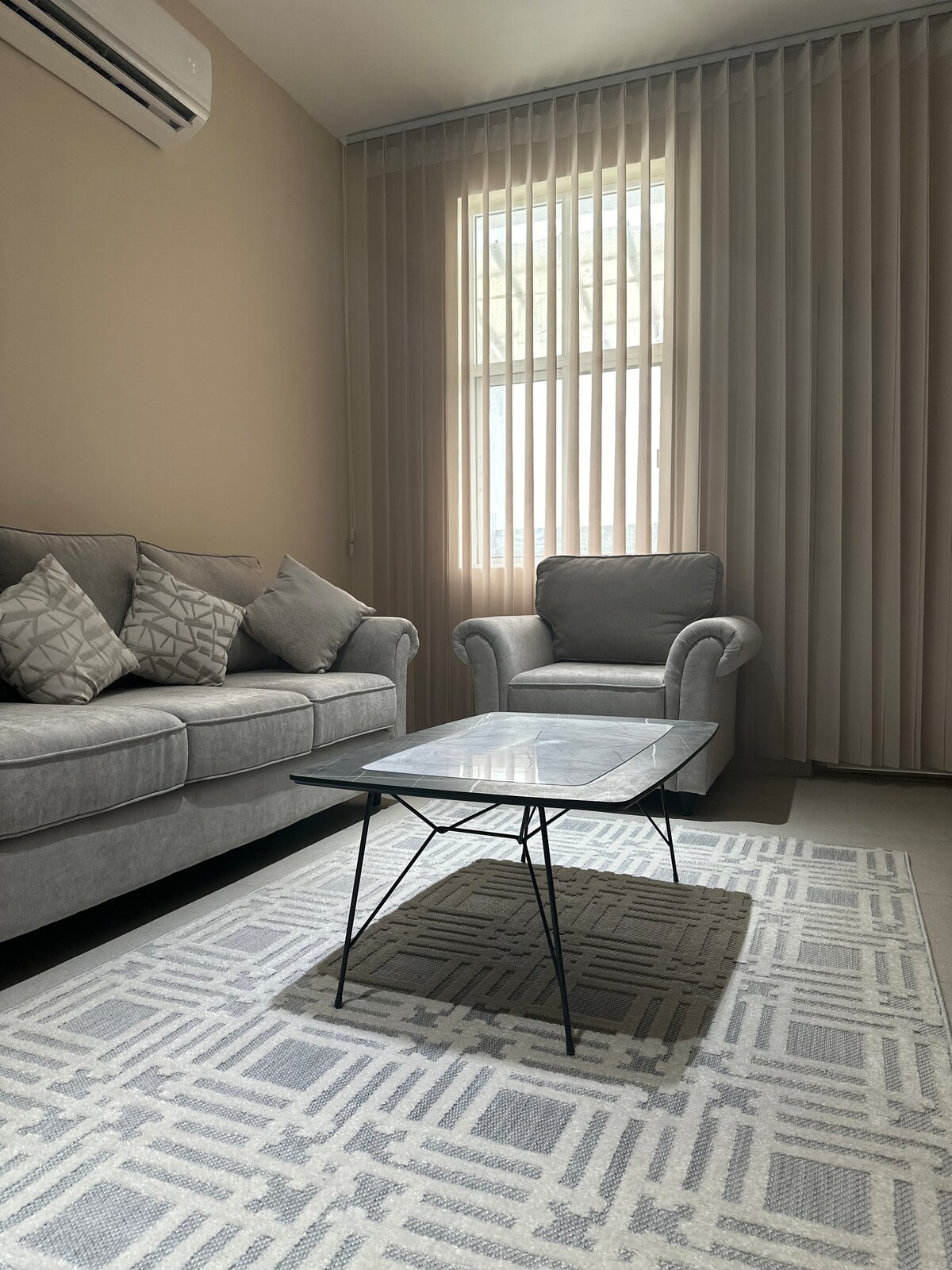 Consists of a spacious well furnished apartment with a contemporary living room with mountain view, spacious king size bedroom, two bathrooms ( one with bathtub and the other with shower stall ),dining area with a dining table set-up, self catered kitchen. Kitchen equipped with split air conditioner, hot water geyser, double door refrigerator, microwave,cooking range with oven, electric kettle, crockery & cutlery, pots& pans.
