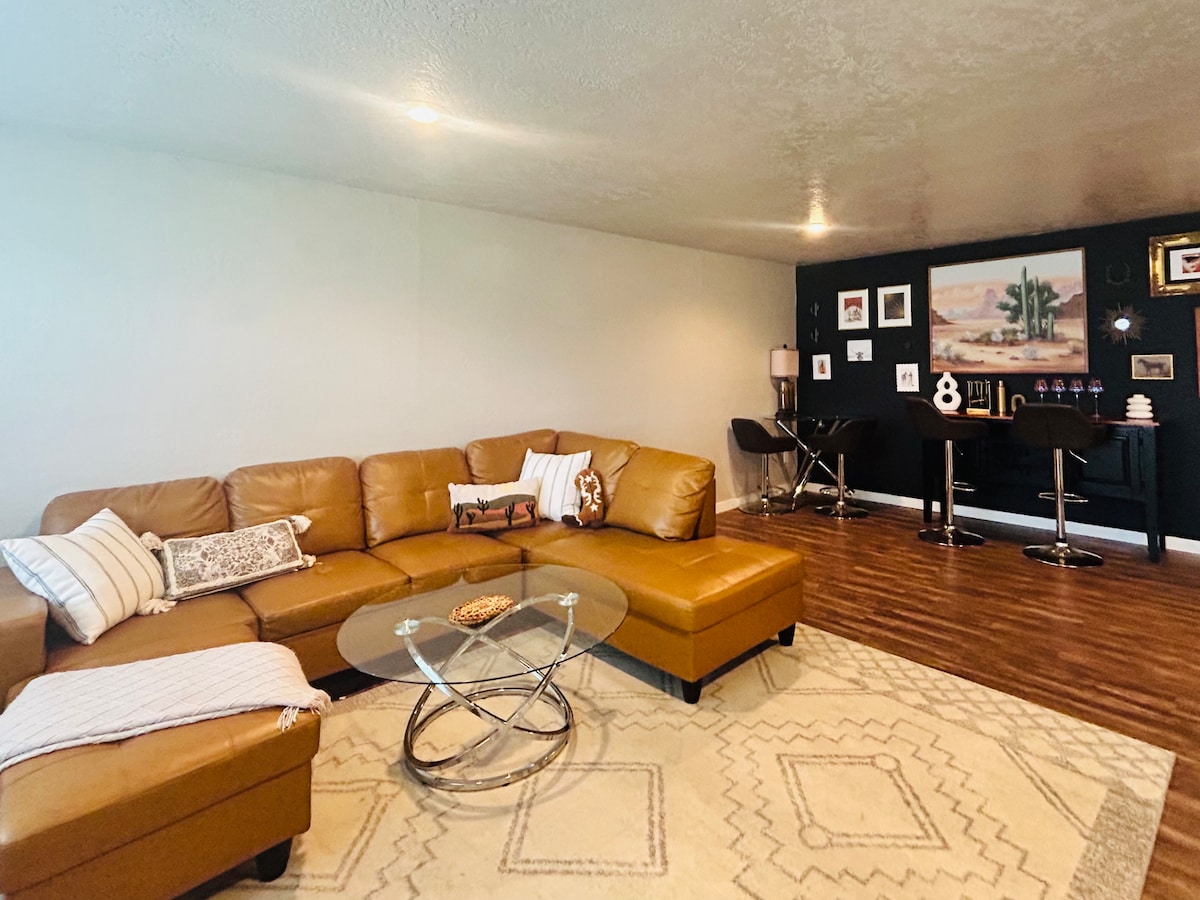 Escape to comfort and character in this cozy 3-bedroom, 2-bathroom townhouse located just minutes from downtown. Blending the convenience of city access with warm mountain-inspired décor, this retreat offers the perfect balance of adventure and relaxation. Step inside to discover woodsy textures, natural tones, and subtle lodge-style accents that bring the outdoors in. Whether you're unwinding after exploring the city or gearing up for a day of hiking, this home sets the tone for a peaceful sta