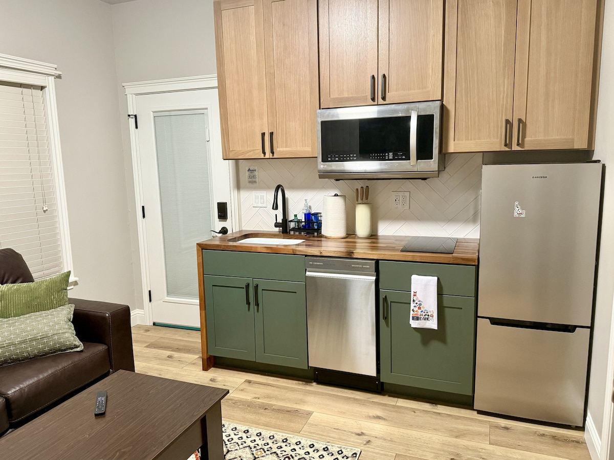 Perfect location! Newly remodeled Studio Apartment is nestled right behind the historic Train Depot. 5min from the Airport. Walking distance to downtown Boise, Boise State Uni, and the Greenbelt. Private studio features granite and butcher block countertops, queen sized bed, hot plate, microwave, mini frigde, coffee maker, bluetooth stereo, and tile shower. Also, a shared laundry room for extended stay guests. Enjoy easy access to everything from this perfectly located home base.