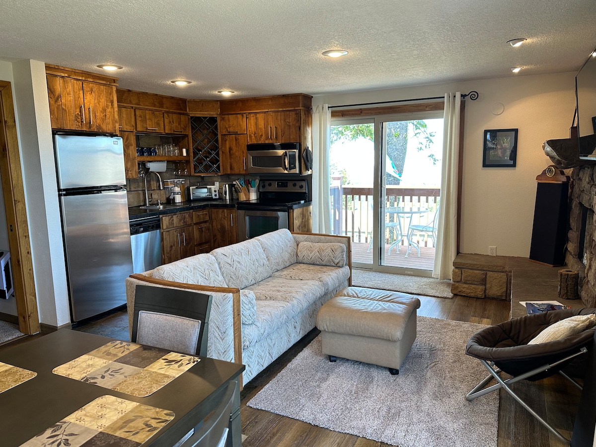 Located atop Bogus Basin Ski Resort, you can ski in/ski out. Our condo features new paint, flooring, and carpets, kitchen and 2 bathrooms, queen bed in the master bedroom, queen sofa bed, and 2 bunkbeds, two decks with awesome views of city lights or mountains. We offer free Wi-Fi, 2 Flat TVs, a DVD player and stereo. Our special attraction is we have the only private 4-person outdoor hot tub on the deck for your enjoyment. You can easily walk to Pioneer Lodge for food during the ski season.