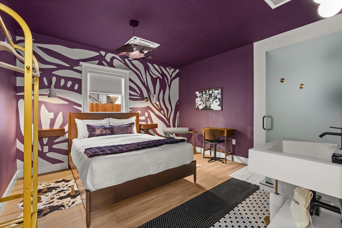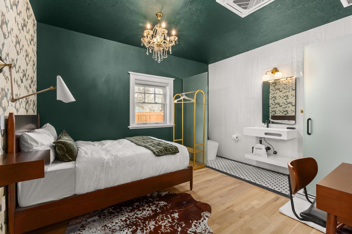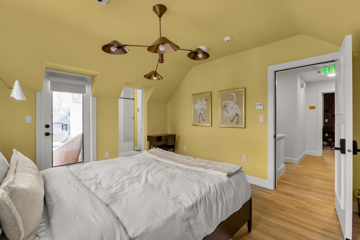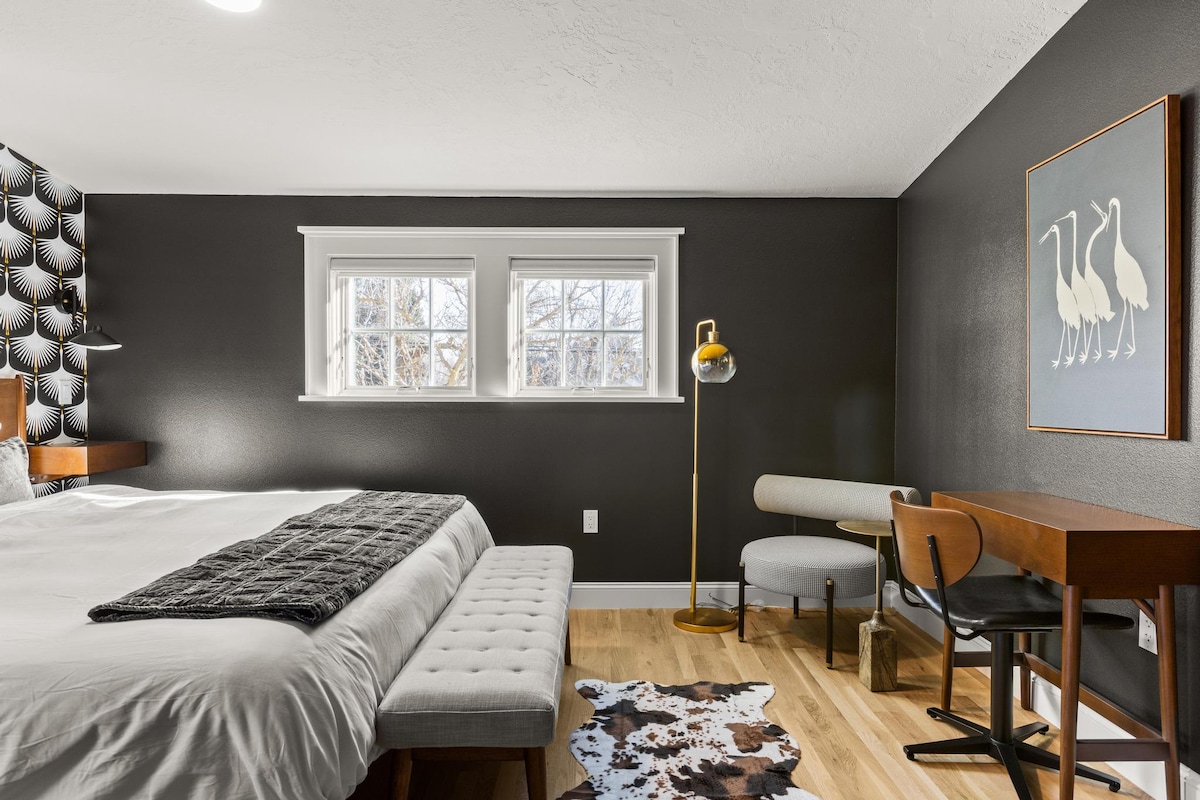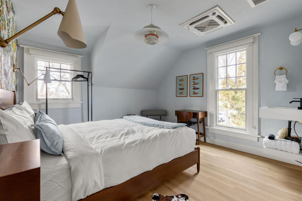 The Wooden House is a spacious almost 900 square foot urban retreat in the heart of the North End. This creative space is a perfect balance of industrial & hygge. Walk, scooter, or Uber to Hyde Park and downtown from this quiet hideaway. In the warmer months, open the bay door to let the outside in. When it’s cooler the radiant floor heat will keep your toes cozy. If you want more heat, turn the sauna on and have a sweat. Extra large bedroom with queen bed & additional lounge space on 2nd floor.