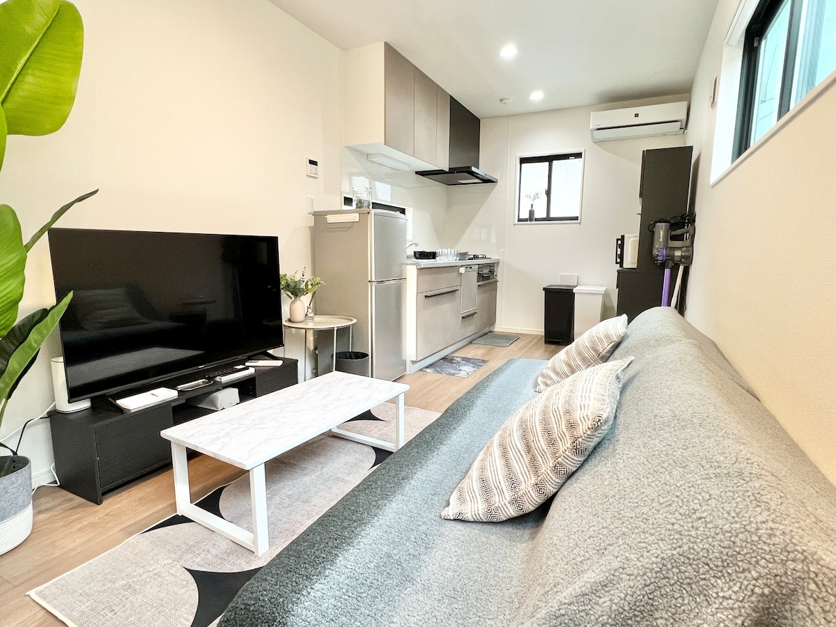 Just a 5-min walk from Kitasenju Station, with easy access to sightseeing spots like Asakusa (16 min) and Akihabara (15 min). Located in a quiet alley behind a lively shopping street, this stylish apartment with a loft sleeps up to 3 guests—great for couples or girls’ trips. The bright interior offers a cozy atmosphere, and a 60-inch screen with projector lets you enjoy movie nights. Restaurants, supermarkets, and a traditional bathhouse are all nearby—perfect for a relaxing Tokyo stay.