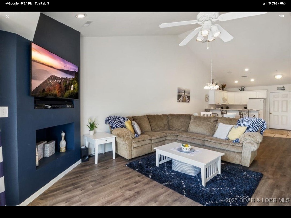 Step into the spacious and relaxing 2BR 2Bath condo at the Knolls complex in a quiet cove of the exciting Lake of the Ozarks. Marvel at the gorgeous views, unwind in the cozy living area, or explore Osage Beach, full of fantastic restaurants, shops, and exciting attractions. ✔ 2 Spacious BRs ✔ Open Design Living ✔ Fully Kitchen ✔ 2 Private Patios (Seating, TV, BBQ) ✔ Smart TVs ✔ High-Speed Wi-Fi ✔ Washer/Dryer ✔ Resort Amenities (Pools, Hot Tub, Sauna, Pickleball,Tennis, Parking) More below!
