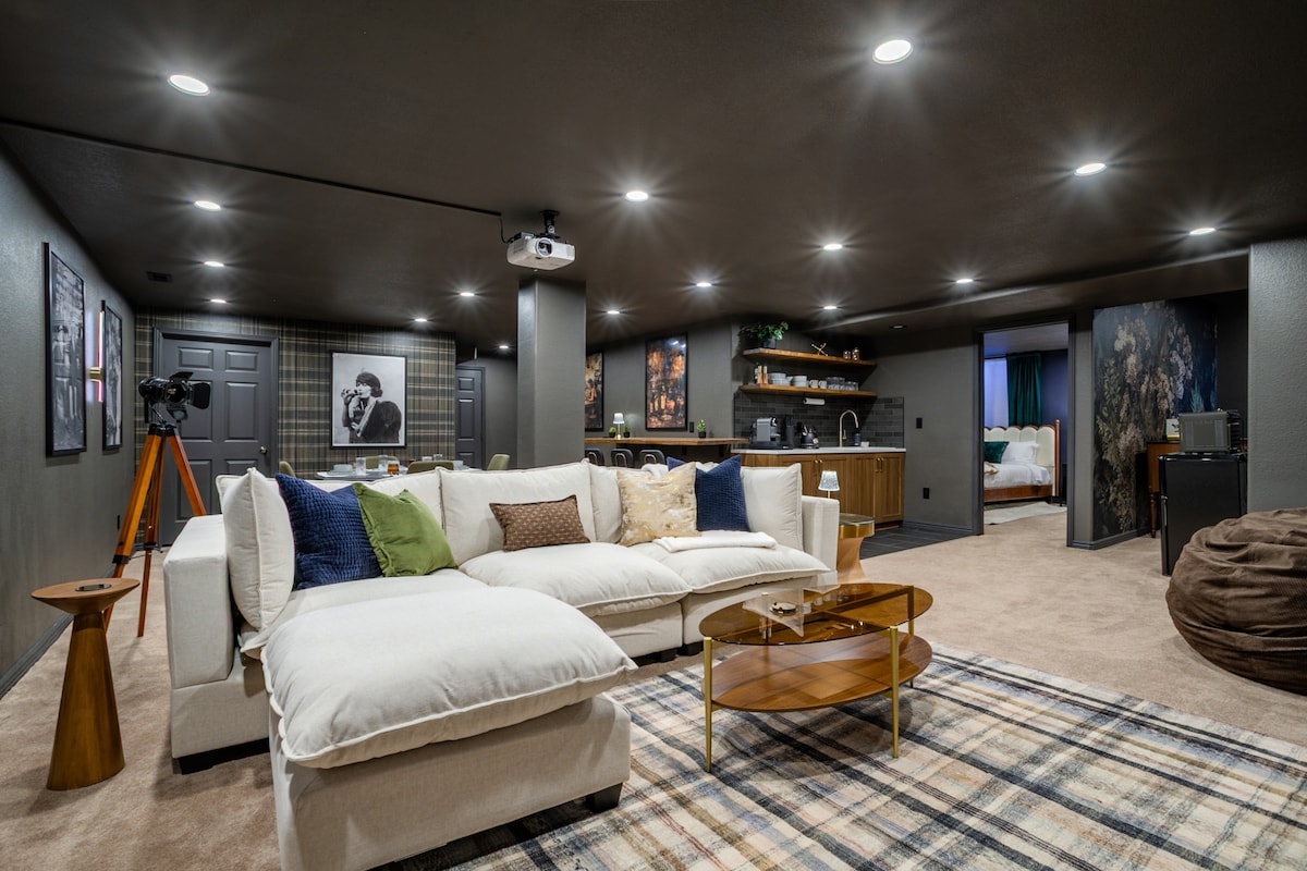 This one-of-a-kind, super fun modern pop art themed house is sure to inspire! The luxurious house sits 9 min from Downtown Denver and sleeps 16 in beds, with 3700 square feet of living space on a huge 1/3 acre private lot. It features 6bd/3ba, a fully equipped kitchen and separate kitchenette, living room, game room with arcade, and movie room with a 4K 100” screen and surround sound. The outdoor area is perfect for gathering, with covered seating around a fire pit and a full outdoor dining set.