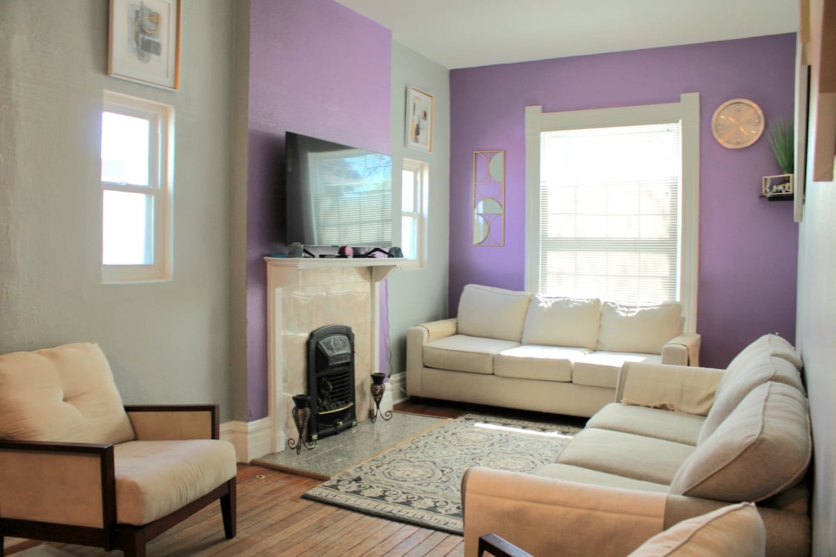 Enjoy a stylish experience at this centrally-located 1904 rowhouse. All new furnishings and beds in every room. Walking distance to Denver Zoo, all museums, botanic gardens, restaurants, bars, and shops all within a few blocks! You don’t need to rent a car but if you do, lots of free street parking! Dispensaries nearby and 420 OUTSIDE. Enjoy the projector at night or walk to one of the many happening places in the city! Crystals , exceptional art, and quality furnishings for you to relax in!