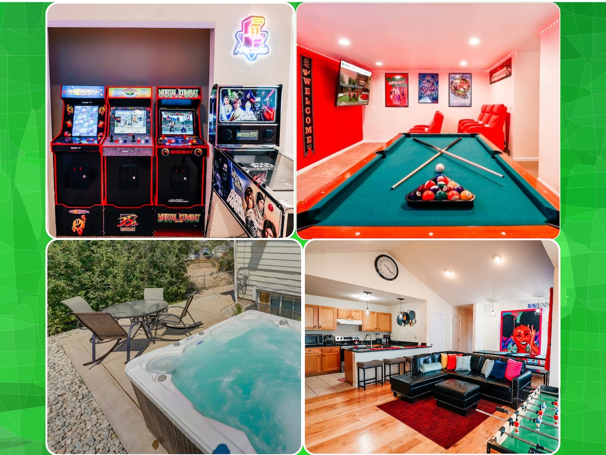 🏡💨 KushKations Beach: 420friendly 4BR/2BA with 🎮 PS5 and 🎬🍿 a 6-seater recliner theater area plus popcorn bar. 🎱🕹️ Games: pool table, 3 arcades (Pac-Mania, Street Fighter II, Mortal Kombat), and a pinball machine. ♨️🌿 Backyard: 6-person hot tub, patio seating, and a propane grill. 🏙️🚆 Downtown Denver / Union Station: 10 min. 🏟️🏀 Ball Arena (Pepsi Center): 10 min. 🏈🏟️ Empower Field (Broncos Stadium): 10 min. 🌊🎢 Water World: 10 min. 🎸⛰️ Red Rocks: 25 min. ✈️🚗 DIA: 25 min.