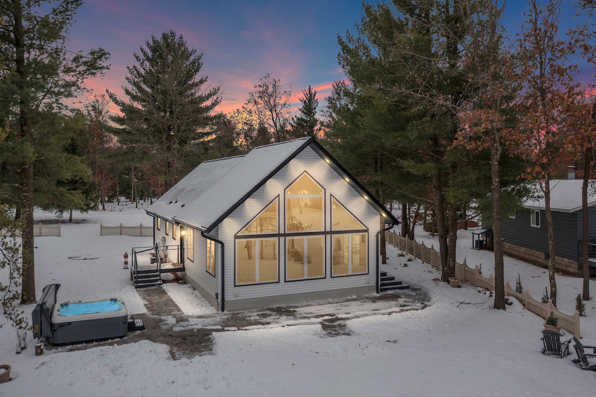 Lakefront Walkout Beach*Hot Tub*Near Sand Valley