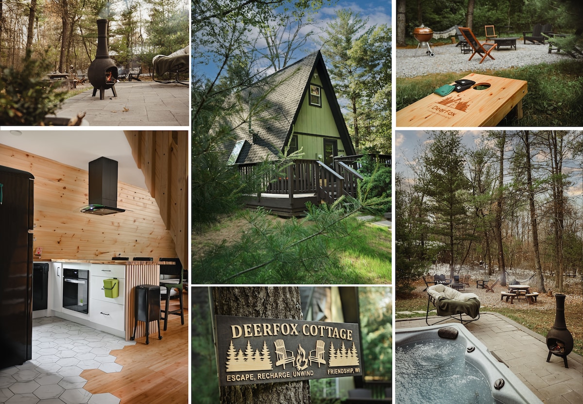 Welcome to DeerFox Cottage, a serene retreat surrounded by trees, deer, foxes, wandering turkeys, and fields of fresh air. Close to scenic trails, lakes, golf courses, and fishing spots, this little A-frame is a wonderful place for solitude and a safe haven to recharge—or for spending quality time with family and friends. Listen to the quiet of the woods, soak in the hot tub, or watch the fire crackle; slow down and savor the moment. A peaceful escape from everyday life awaits you year-round.