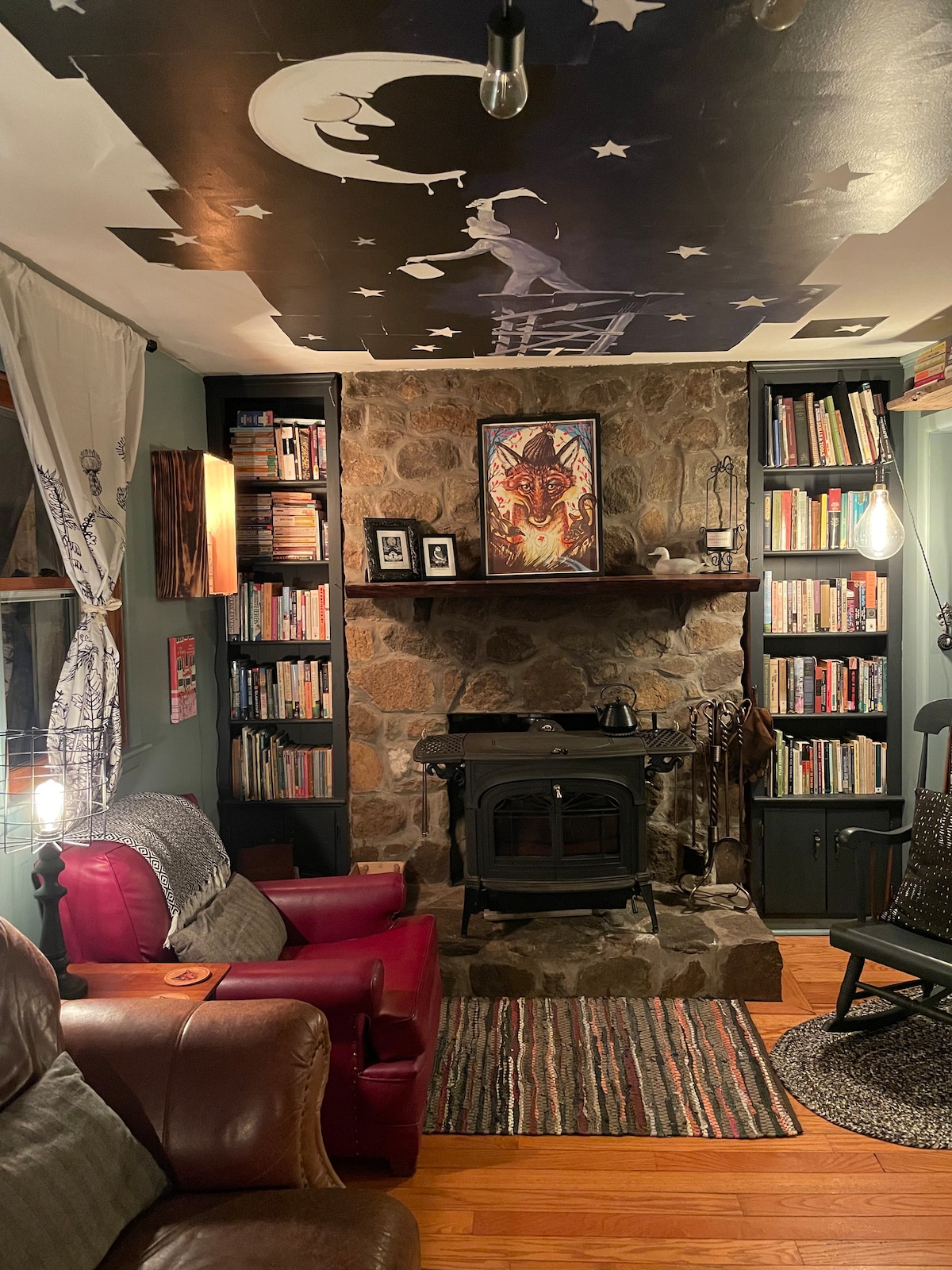 You will instantly relax in this stylish, pet-friendly home only 8 mins from I-70, exit 42. Under a canopy of trees find a beautifully landscaped yard with decks and two fire pit areas. Enjoy the well-apportioned kitchen with organic, fair trade coffee. Relax with 2 Roku TVs, games and puzzles, bathe with soaking salts and Turkish towels. For outdoor enthusiasts, pitch your tents. Sit by the wood-stove in the winter, or lay in a hammock when it’s warm. Welcome to The Crooked Cottage!