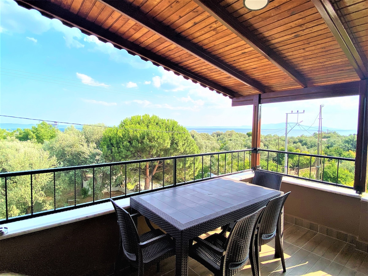 2 bedroom large house on the terrace second floor with sea and green view very large balcony On the coast road of Assos Kucukkuyu, just 50meters to the beach There is a french double bed in one bedroom, two single beds in the second bedroom and a triple sofa bed at the airconditioned living room turns into a double bed when pulled out Open in all seasons. Hot water, blankets, duvets are available for winter. Air condition is sufficient for heating. Electricity radiator heater can be provided