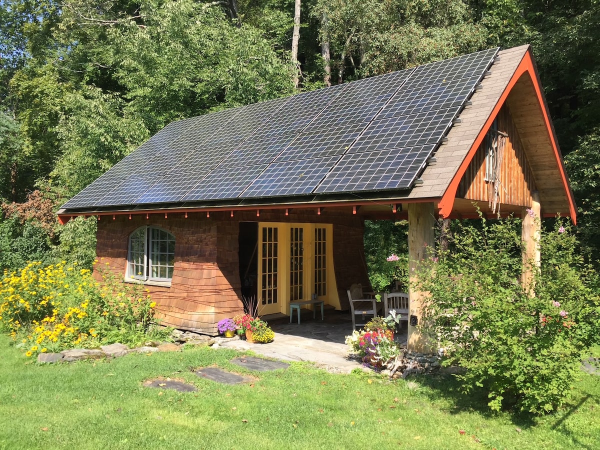 Come stay at our lovely renovated barn guesthouse in the Green Mountains of Vermont near Middlebury College. Perfect spot for a quiet retreat or home base for your outdoor adventure! 3 min. to Rikert Nordic Center, 9 min. to Middlebury SnowBowl. 40 min. to Sugarbush. 1 hr to Killington. Sleeps 1-6 people on 3 floors: entry level living area and laundry; mid-level with kitchen, bedroom, and bathroom ; upstairs loft bedroom suite with seating area (futon, chairs, bookcase, and TV), and desk.