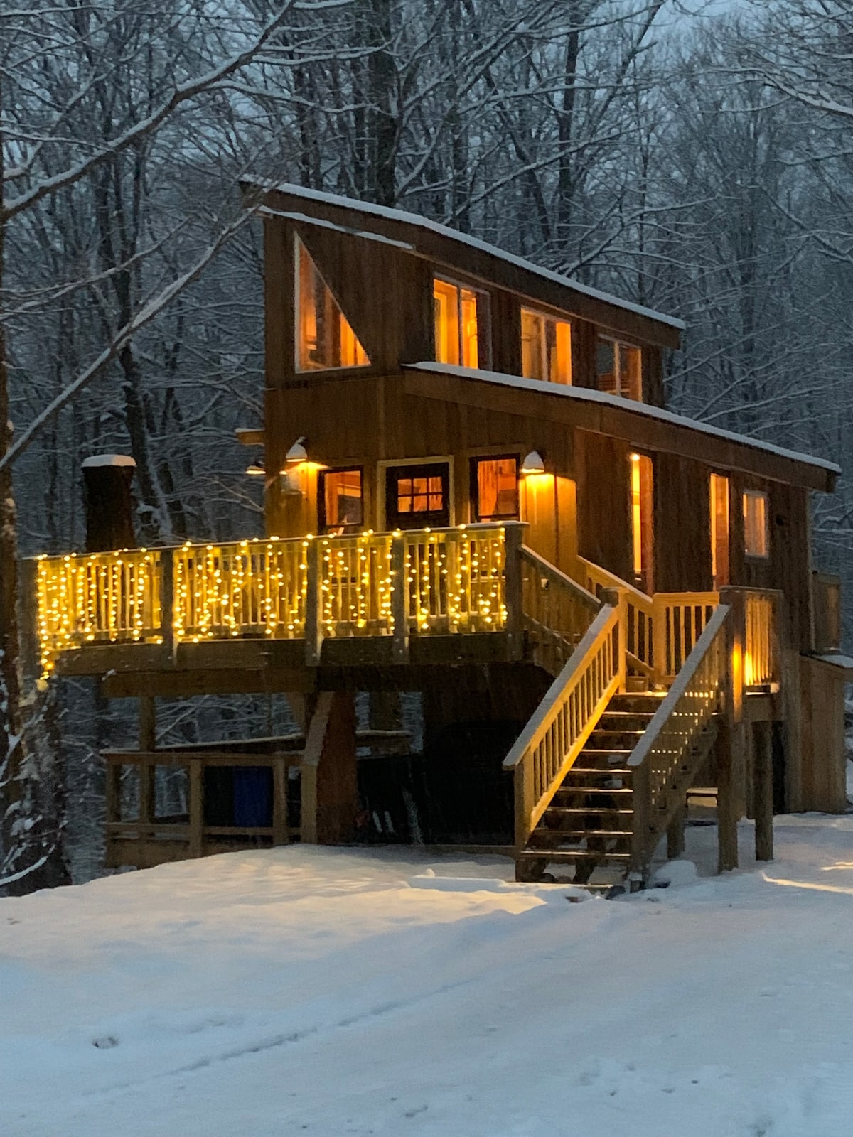 In a secluded, hand-crafted off the grid cabin, come and enjoy the elements with us at Drift Farmstead. A 3-minute walk leads you through gardens and pasture, to Ravenwood, a small, intimate cabin with everything you need. Be it an extended weekend tucked in seclusion, amongst the birds, river and trees, or find the comforts of a 37 acre small farm nestled in the mountains and settle in, working from afar. Top shelf skiing at Sugarbush is near, along with Vermont's finest grub and beer.