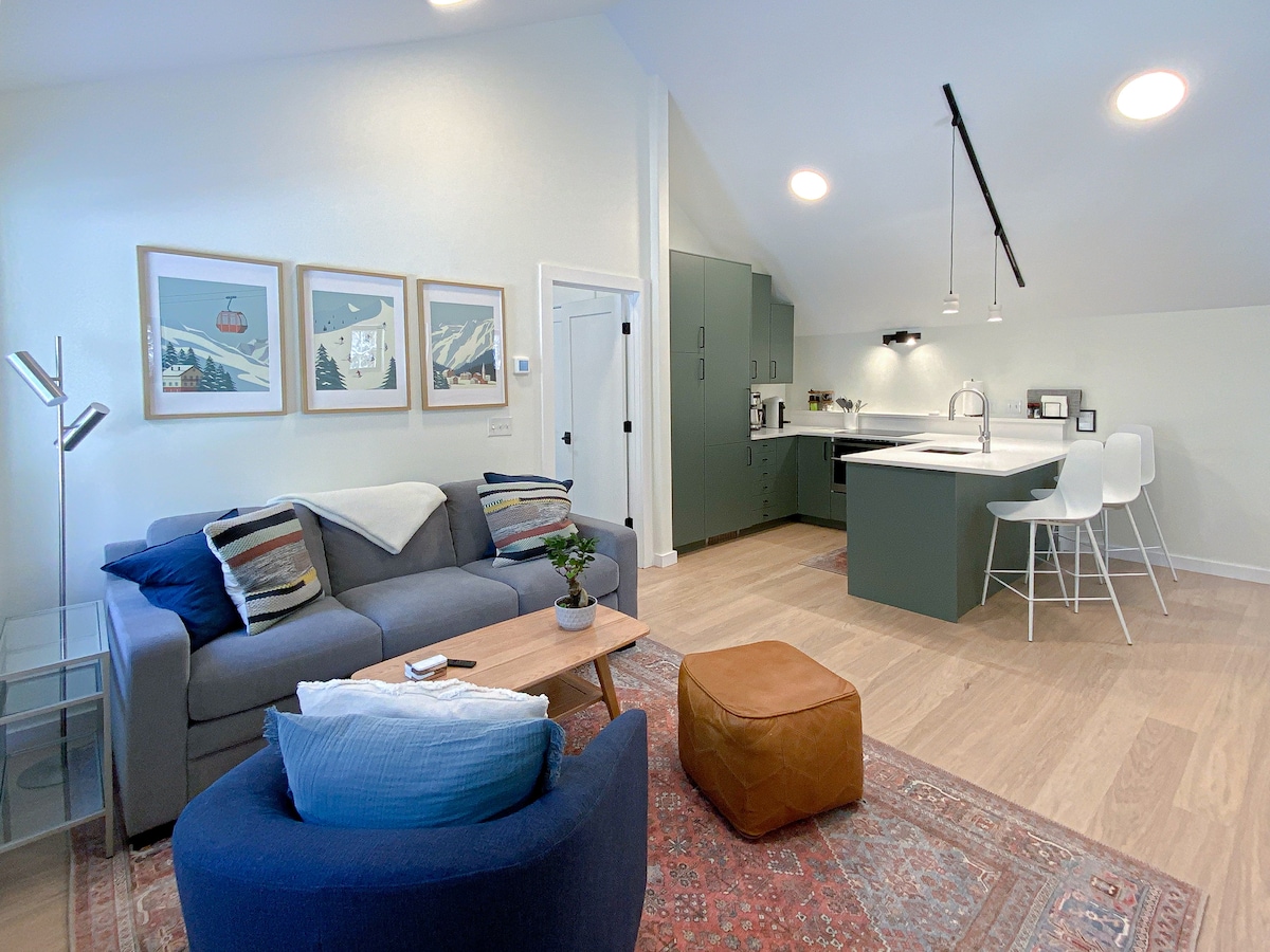 NEW CONSTRUCTION! Located just a 1/2 mile from the base of Mt. Ellen, access to classic Mad River Valley mountain bike trails just outside the door. This newly constructed apartment has over 1000ft of living space and large windows covering every wall. This quiet apartment is a great Vermont get away for a couple or small family. Spacious living room, kitchen, bedroom, combined with the natural light and views on two sides allows you to take in all the best that this part of Vermont has to offer