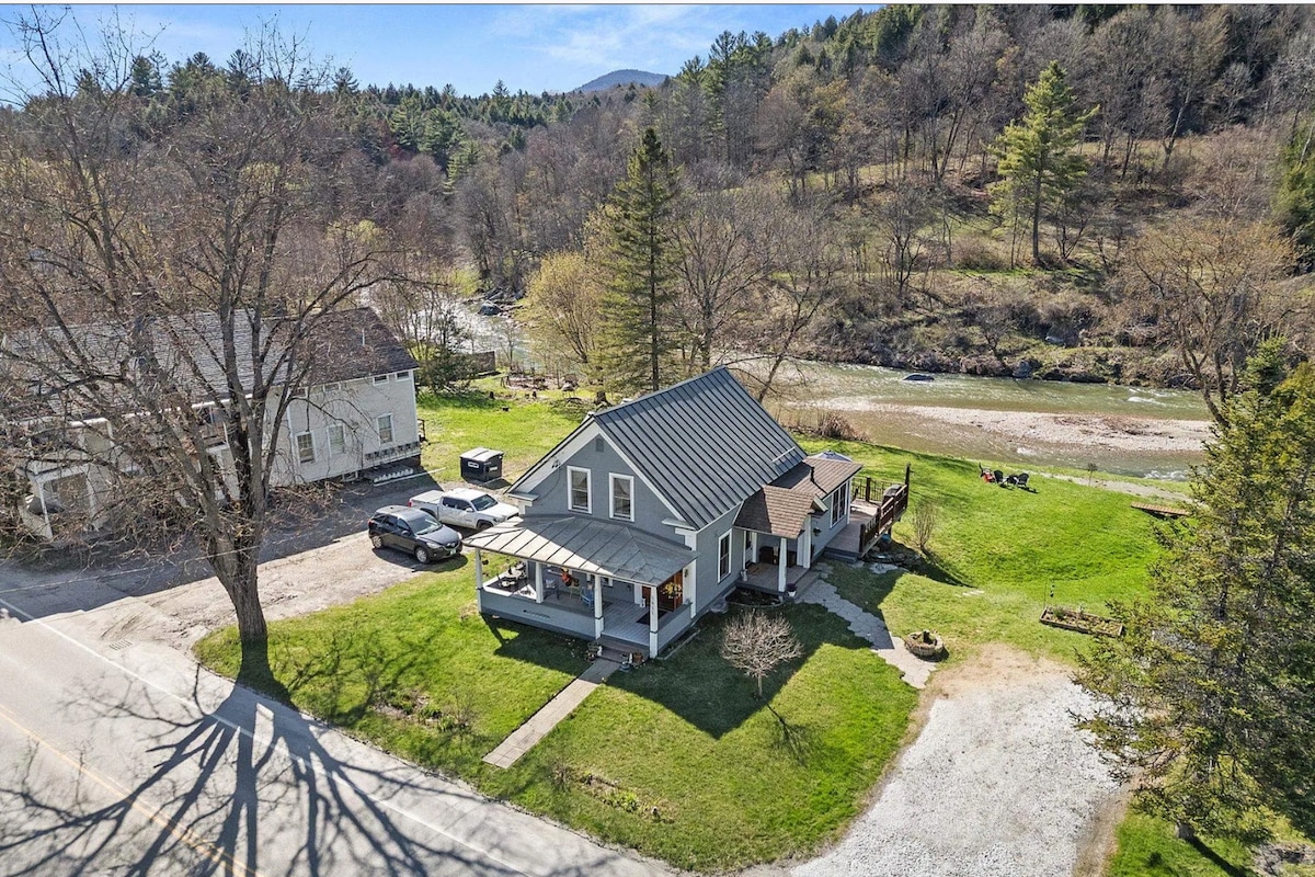 A well-appointed haven for Green Mtn play and deep relaxation, with a 6-person detached sauna. This warm, spacious (>1800 sq ft) home is a base for skiing, x-country, hiking, biking, river-hopping & more. And for those who just need a break, a peaceful spot for walks, hammock time, cooking, or taking in the view. Between Sugarbush (~30 min) & Killington (~35 min). Top-notch mountain & road biking. Hiking and pristine swimming holes abound. Well-equipped for families. We consider pets.