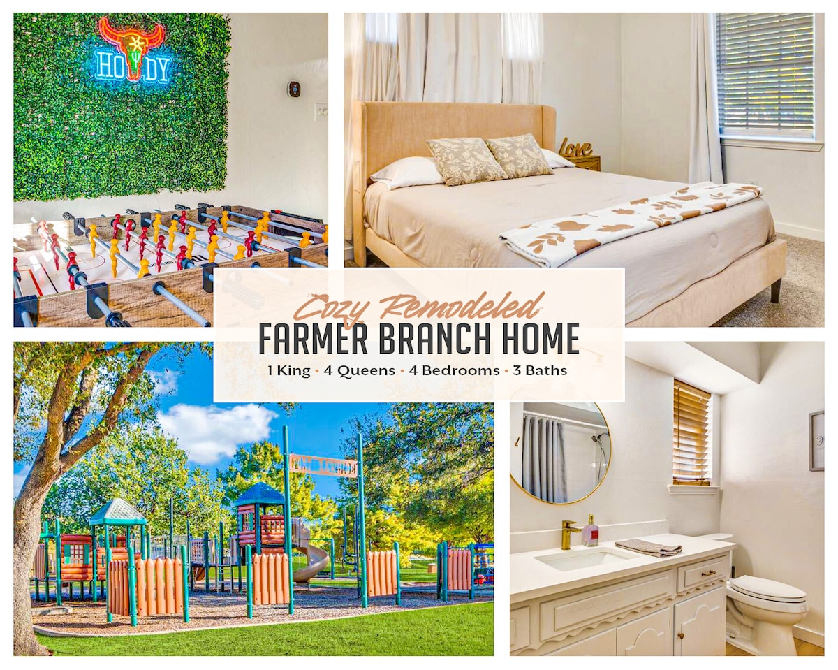Downtown Carrollton home with 3 Bedrooms and 2 full bathroom rooms. Convenient to both downtown and everything along I-35. 15 minutes from both airports. House has been fully renovated in 2022 and modernized. Kitchen has brand new appliances and has everything you would need to make a meal. Main bedroom features a king bed with work space while other rooms features queen beds. Smart TVS in all bedrooms. Enjoy lounging on our covered patio by the fire-pit in the large quiet treed backyard.