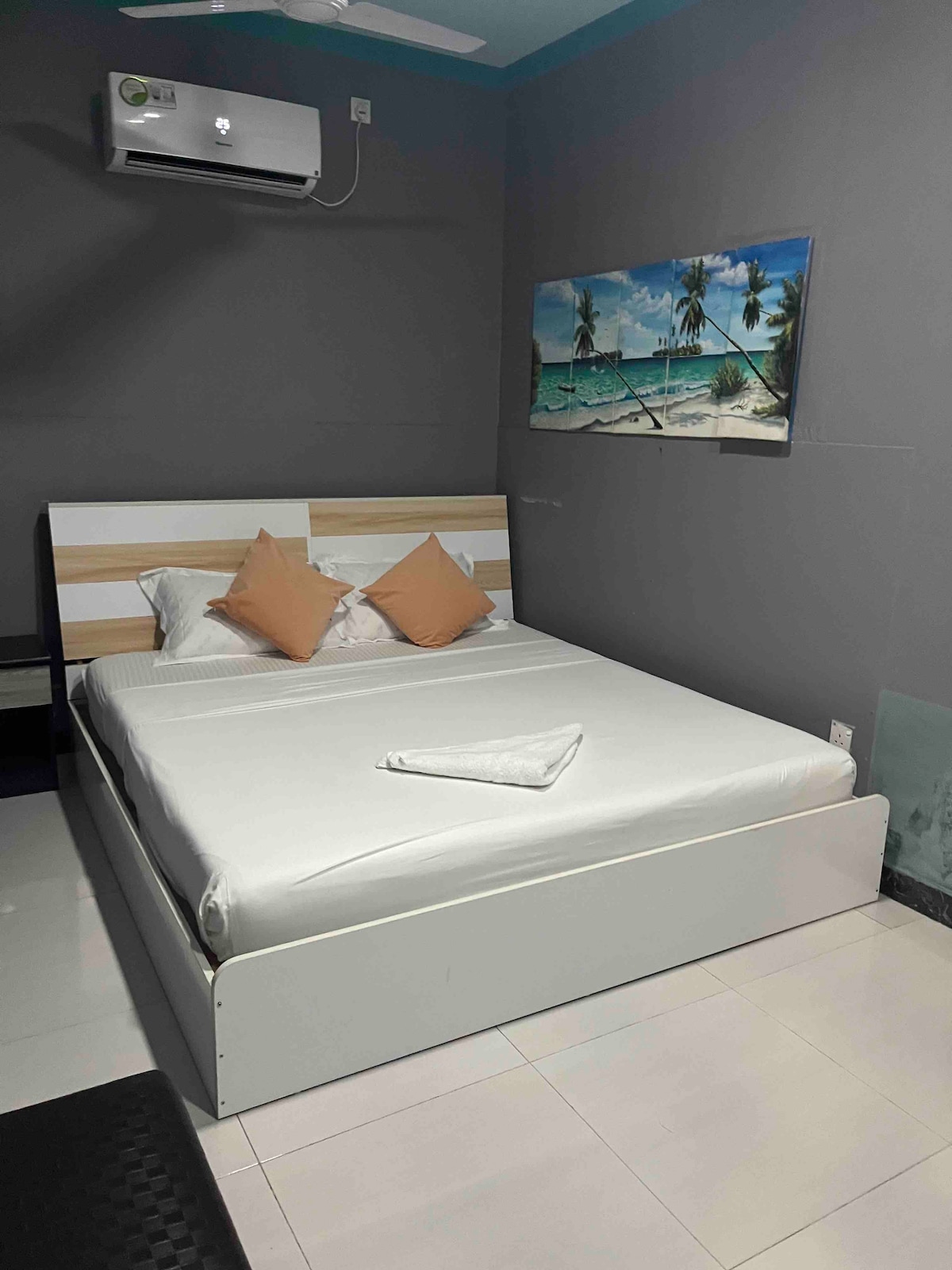 2 guests 1 Bedroom 1 Queen bed 1 Bath Great location Nearby beach, 5 minutes drive to Nature park reserve. Addu City Hithadhoo is the second most populated town in the country. It is about 5.3 square meter surface area. Getting here is by Air for the moment. A flight from Velana International Airport the capital to Gan International Airport will be around 541 km that is about 1 hour 30 minutes flight. The people here speak Dhivehi or “Addu Bas” and English