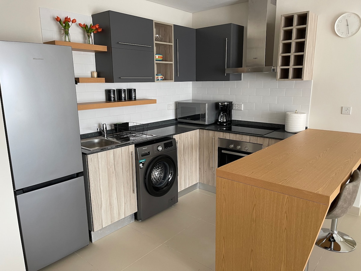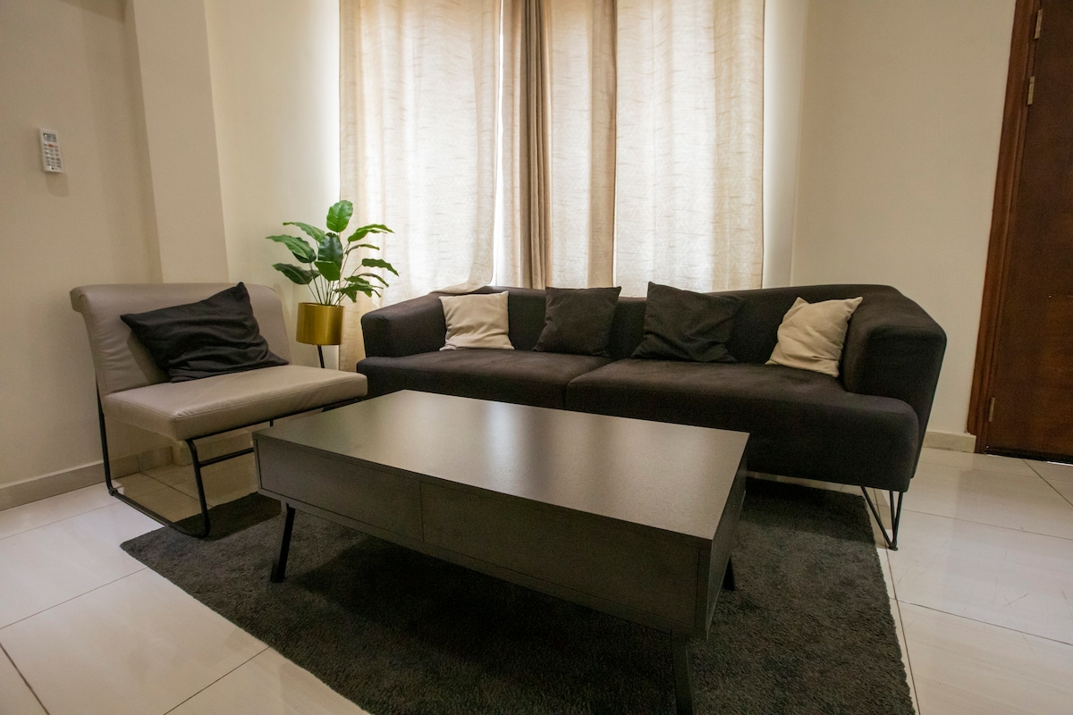 Enjoy your stay in this elegantly furnished 1-bedroom apartment in the center of East Legon, Accra. Situated by the roadside, the apartment is 14 mins away from Kotoka International Airport. It is close to The AnC Mall, Coffee lounge, Pulse Gym and Fitness, and several restaurants and eateries, including KFC and Pizza Hut.