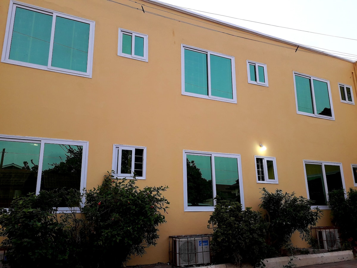 Its a beautiful quiet place with homely people. The neighborhood is also quiet. We have a plunge pool in the compound, where you can deep yourself on a hot ,sunny day. The pool is cool and the water is always fresh. Our beds are very comfortable. There is a conference hall on the property that can be used for parties .You can always get delicious meals at cheaper rates to buy on the property , we also sell drinks and water. We are 15mins away from the kotoka international airport.