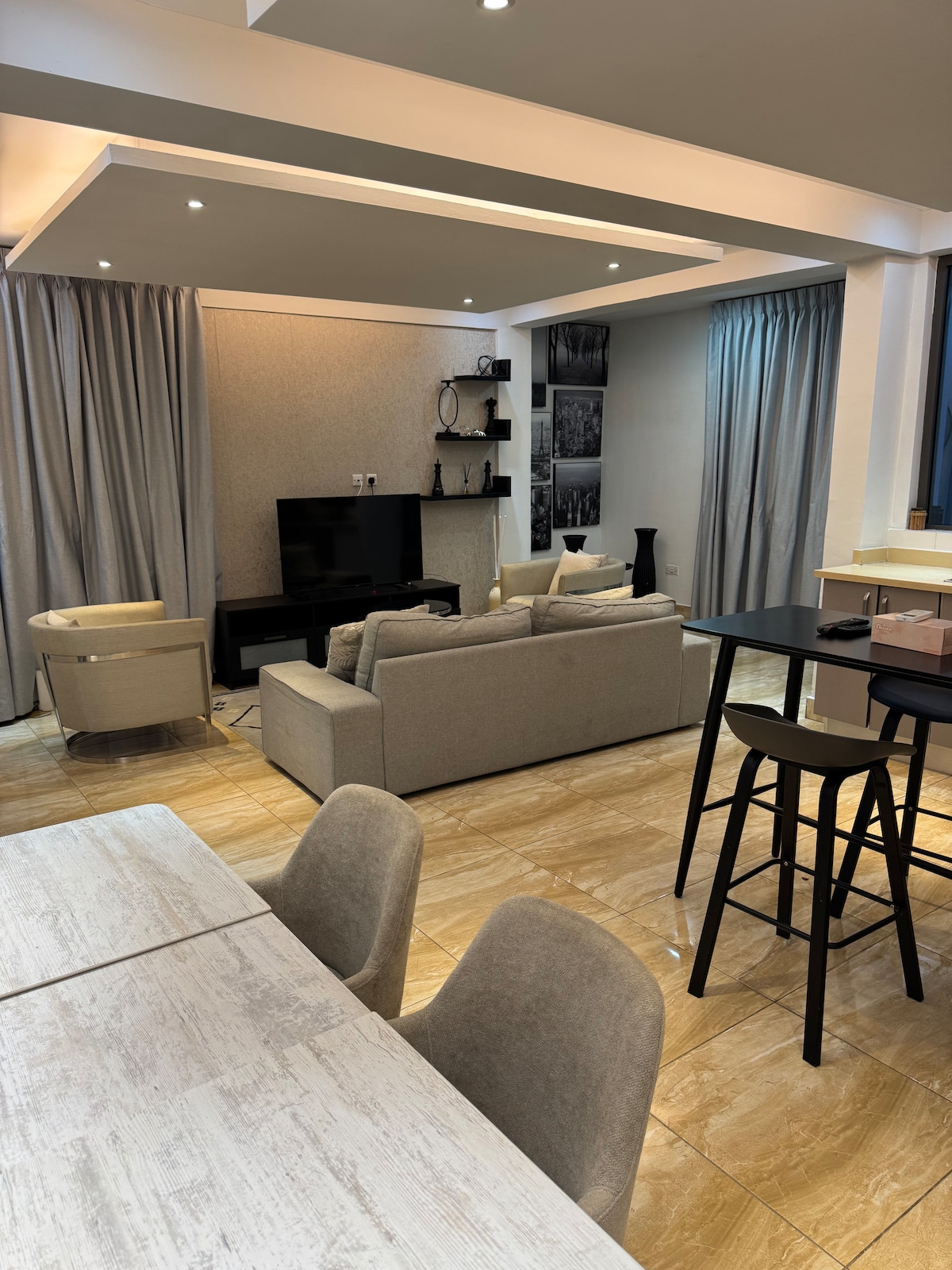 Enjoy a stylish and cozy experience in the heart of East Legon, Accra. With fully fitted kitchen, beautiful pool downstairs, gym upstairs on the 7th floor -with breathtaking view of the city Centre (especially at night time with lights & gilts), sunset view on the 7th floor, balcony, complimentary water, complimentary beverage, house keeping cleaning at least once a week and a peaceful serene.