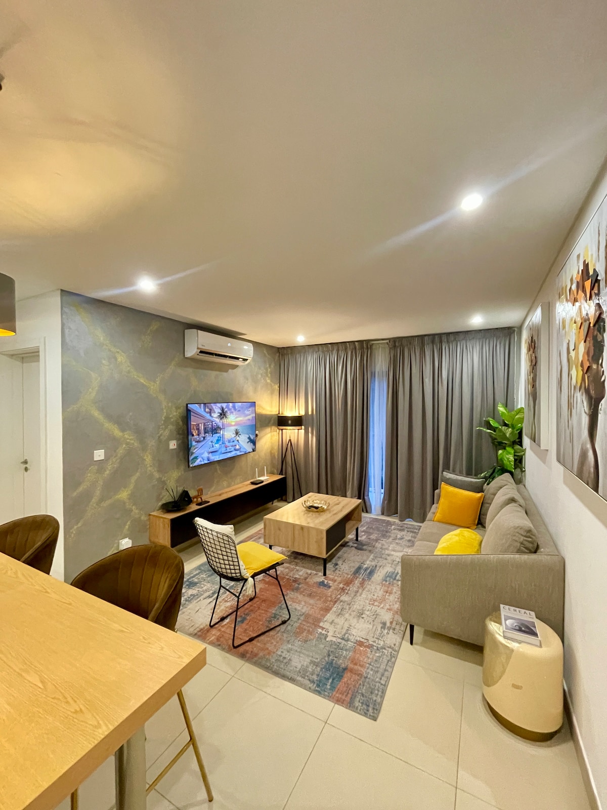 This apartment is located within Mariville Homes Estate, a gated residential community off Spintex Road, near Manet Junction. Conveniently situated just a 15-minute drive from the airport, the property offers a secure and serene environment. The estate is gated and monitored 24/7 by private security, ensuring controlled access. The apartment features two bedrooms and can comfortably accommodate up to four guests. Both bedrooms are en suite and feature king-size beds.