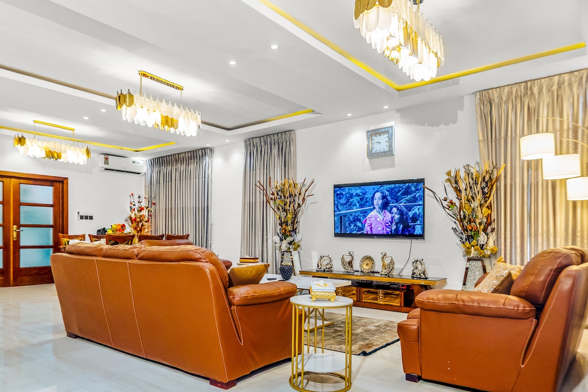 ☞ Private pool with lounge seating (3.5 ft. shallow end, 6.5 ft. deep end, 10x23 pool) 🏊 ☞ Starlink WiFi (250+ Mbps) 🌐 ☞ 24/7 power (solar + backup generator) ⚡ ✭ Cozy King Size Beds (180x200 cm) 🛏️ ✭ Optional chauffeur & chef services 🚘👨🏾🍳 ✭ Daily Cleaning available 🧹 ☞ 3850 sq. ft home ☞ Smart TVs + premium Samsung 11.1.4 Surround Sound Bluetooth speakers 🎬 ☞ Parking (onsite, 4 cars) ☞ Washer + Dryer ☞ Fully equipped + stocked kitchen ☞ A/C 》25 - 30 mins to the airport