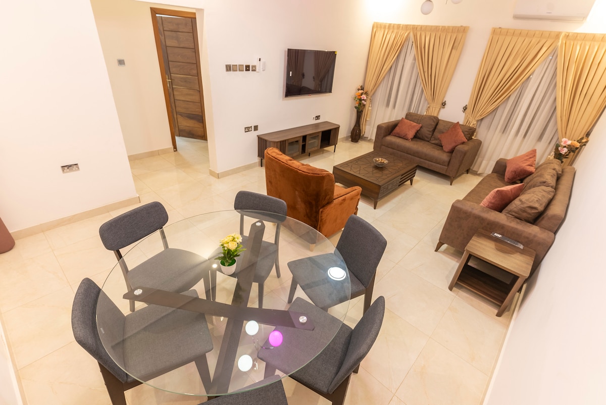 A cosy apartment in a serene and secure environment built with your comfort in mind. 25 minutes away from the Kotoka International Airport. Equipped with amenities to make your stay enjoyable. Conveniently situated with a supermarket in the area and also some fine restaurants and eateries. There is also a gym close by within walking distance.