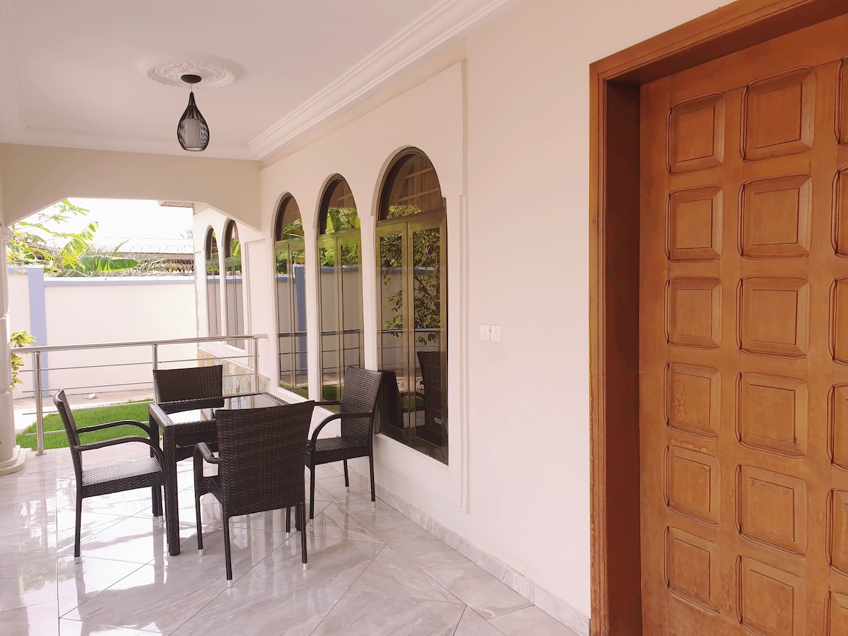 Welcome to Palms Garden! This gorgeous home with an open plan living, dining and bar area extends onto a stunning oasis in the backyard featuring a sparkling pool offering a refreshing respite from the heat and a picturesque backdrop. This home has an optional car, WiFi, a gourmet kitchen. It's secured with 24/7 security and a friendly housekeeper. It’s conveniently located in West Trasacco, a serene neighborhood in the East Legon vicinity close to many shops and restaurants.