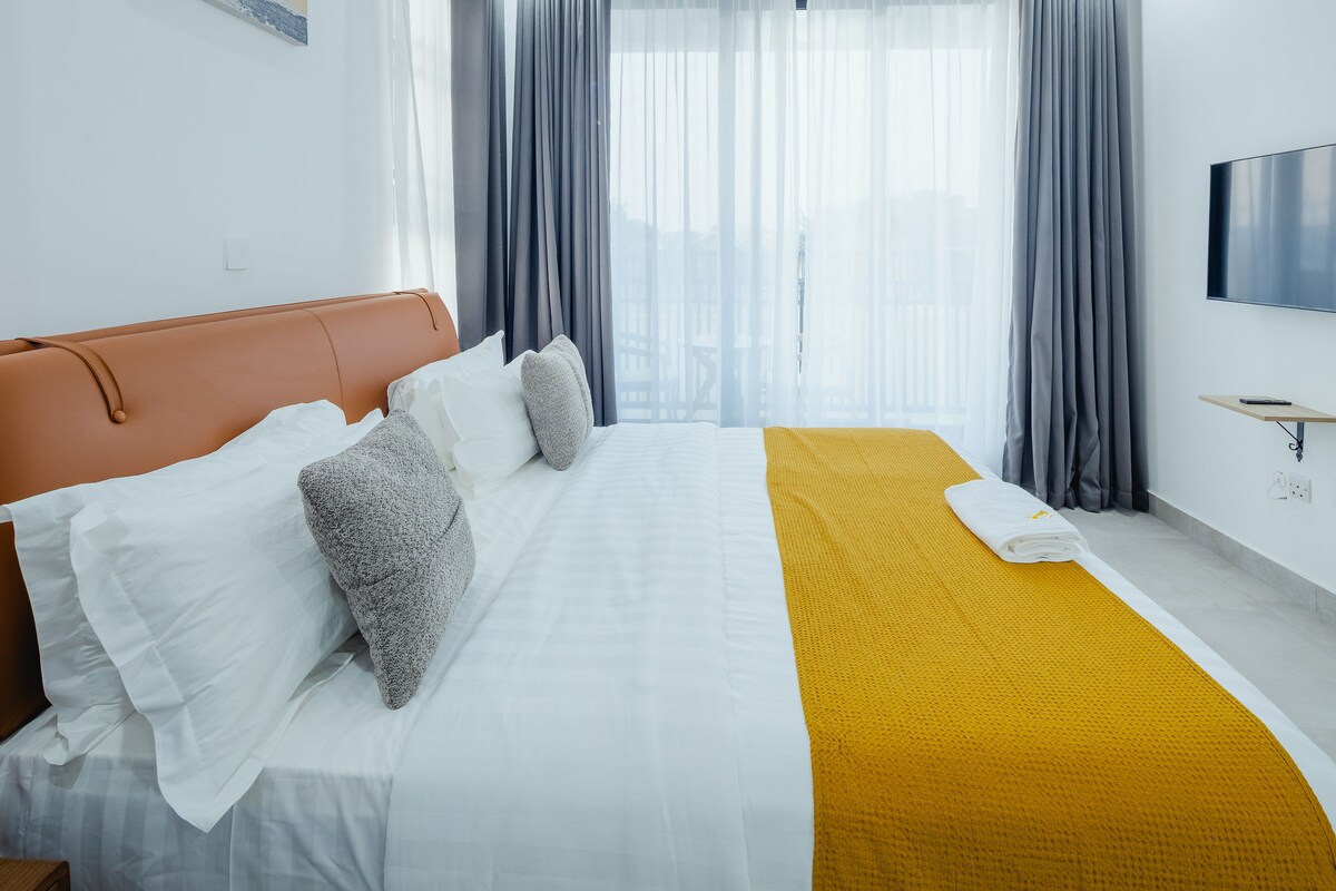 Welcome to your upscale urban getaway in the city of Accra! With a stunning view of the Aburi mountains, only a few minutes drive away or 15 minutes walk. Under 12 miles from the airport, straight on the M4 with no turns. Our two-bedroom apartment offers joy & comfort with 24/7 security, 24/7 electricity & water, with exclusive amenities, such as a pool, rooftop terrace, modern gym, full kitchen, wifi, barbecue, and more that will make your stay truly unforgettable.