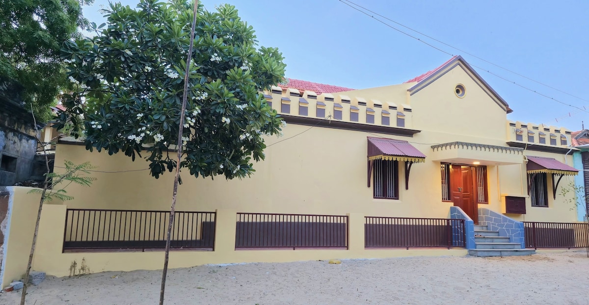 “Experience serene coastal luxe at Miranda’s Villa—where elegance meets the soothing charm of Manapad’s shoreline. Enjoy peaceful ocean breezes, refined interiors, and a tranquil atmosphere perfect for unwinding. Just steps from the beach,housed in a 100 year old Heritage structure, this villa offers a luxurious escape with comfort, style, and the calm beauty of Manapad’s Little Rome.”