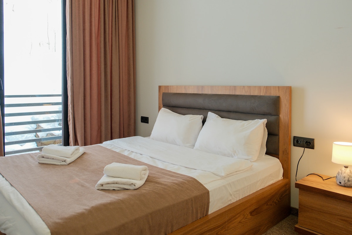 Escape to Tranquility at Resort Goderdzi: Your Cozy Winter Retreat Experience the perfect getaway at our brand-new, 1-bedroom apartment in the heart of Resort Goderdzi. Nestled in the serene woods and surrounded by stunning nature, this winter retreat offers the ideal blend of comfort and adventure. Book your stay now and immerse yourself in the tranquil charm of Resort Goderdzi – where nature meets luxury!
