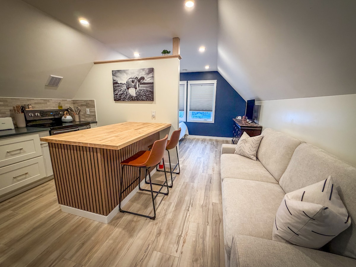 *** Chosen by Boston Magazine as one of five New England barns to rent! *** Our beautiful barn loft in Hinesburg is close to Burlington, the Green Mountains and Lake Champlain. It features a new kitchen, cathedral ceilings, plenty of natural light, rustic charm and lovely views. The space has its own entrance and is completely separate and private from the main house. A J1772 Level 2 EV charger is available for an additional $10 per night.