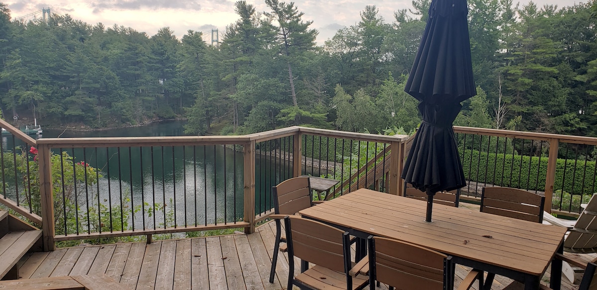 Getaway at our stylish and open concept airbnb just steps from the Rideau River. Our Airbnb boasts views of the Rideau locks from the front, and of our 6 acre property from the back. Take our canoe or paddle boards out on the river, enjoy a campfire under the stars, hike the nearby trails, or go exploring in the nearby town of Merrickville. Enjoy your own private courtyard with dining table, BBQ, and lots of privacy.